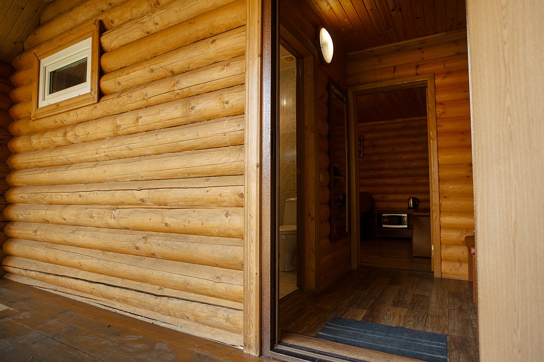 Беседка из оцилиндрованного бревна, на самом берегу речки Ведемья, площадью 18 кв.м.