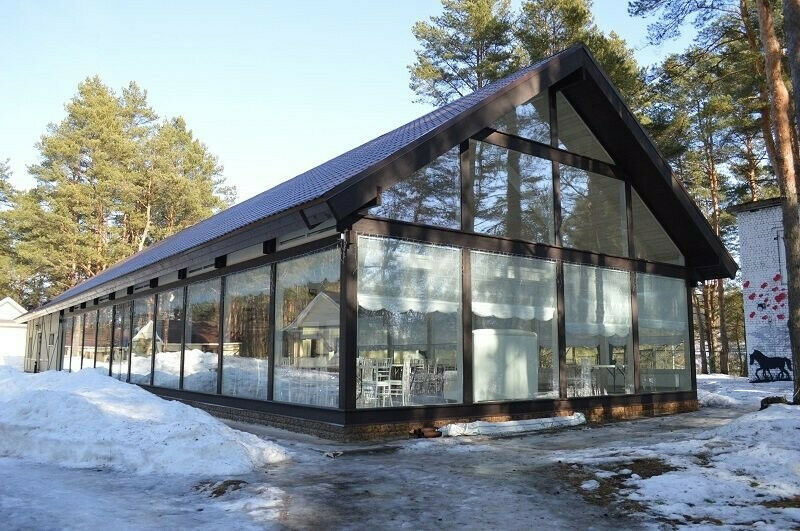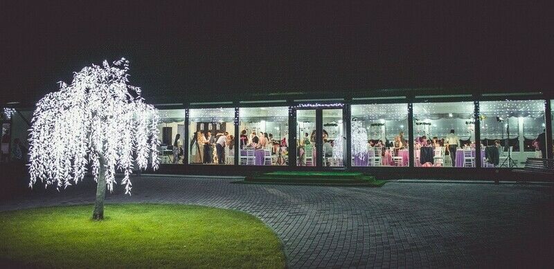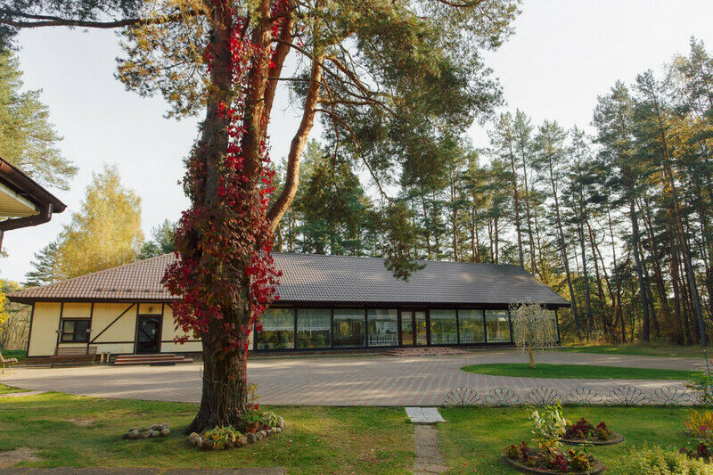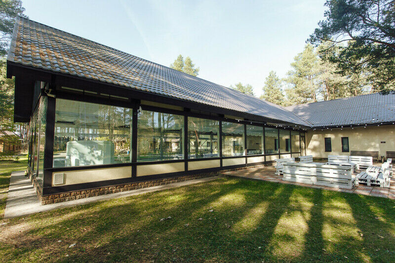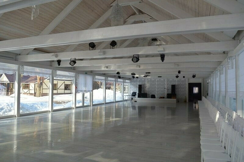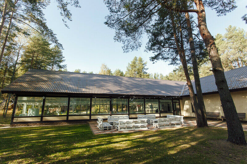 Всего 15 минут от города и вы на свежем воздухе в сосновом бору. Просторный зал может комфортно уместить до 50 человек.