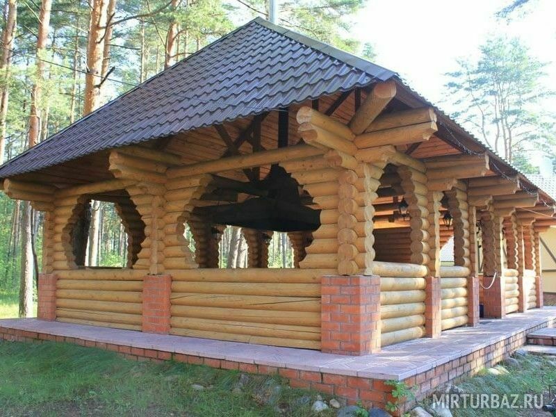 Беседка из оцилиндрованного бревна, площадью 48 кв.м.