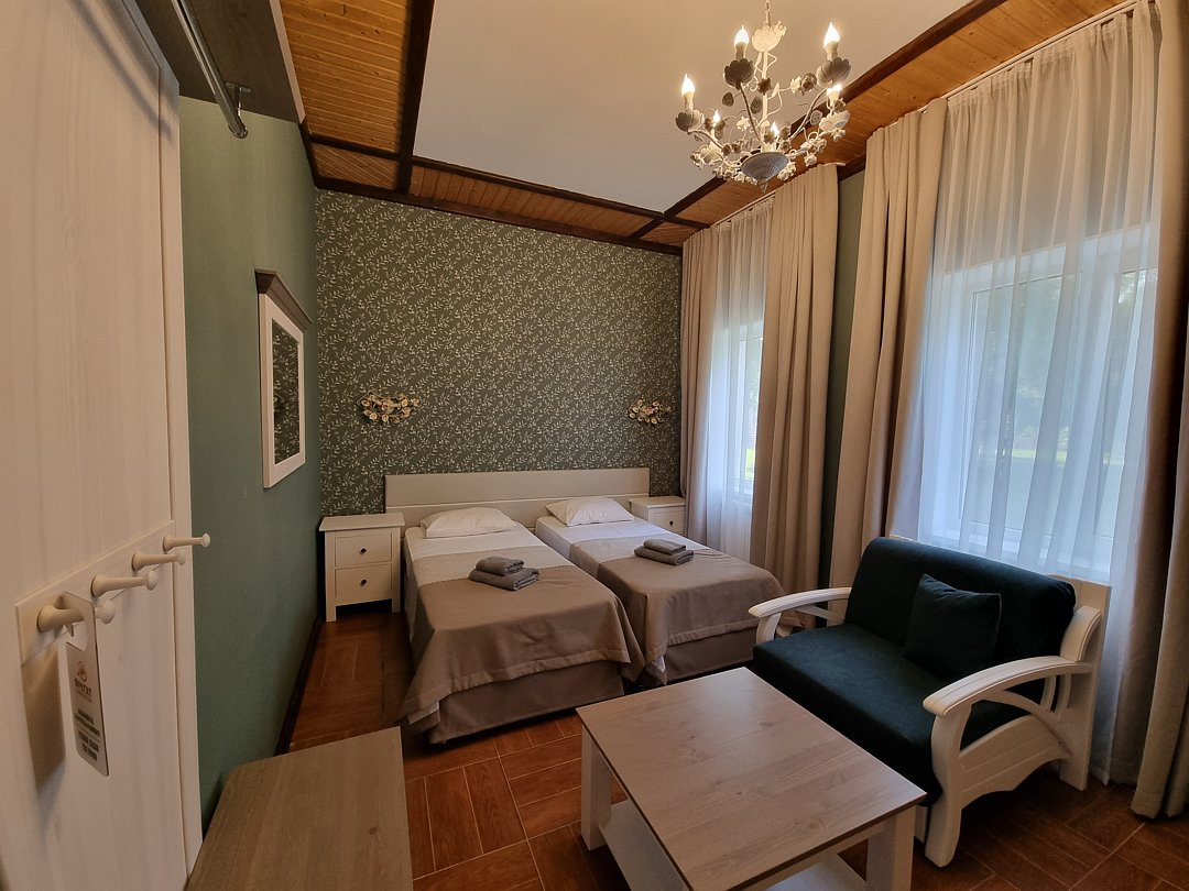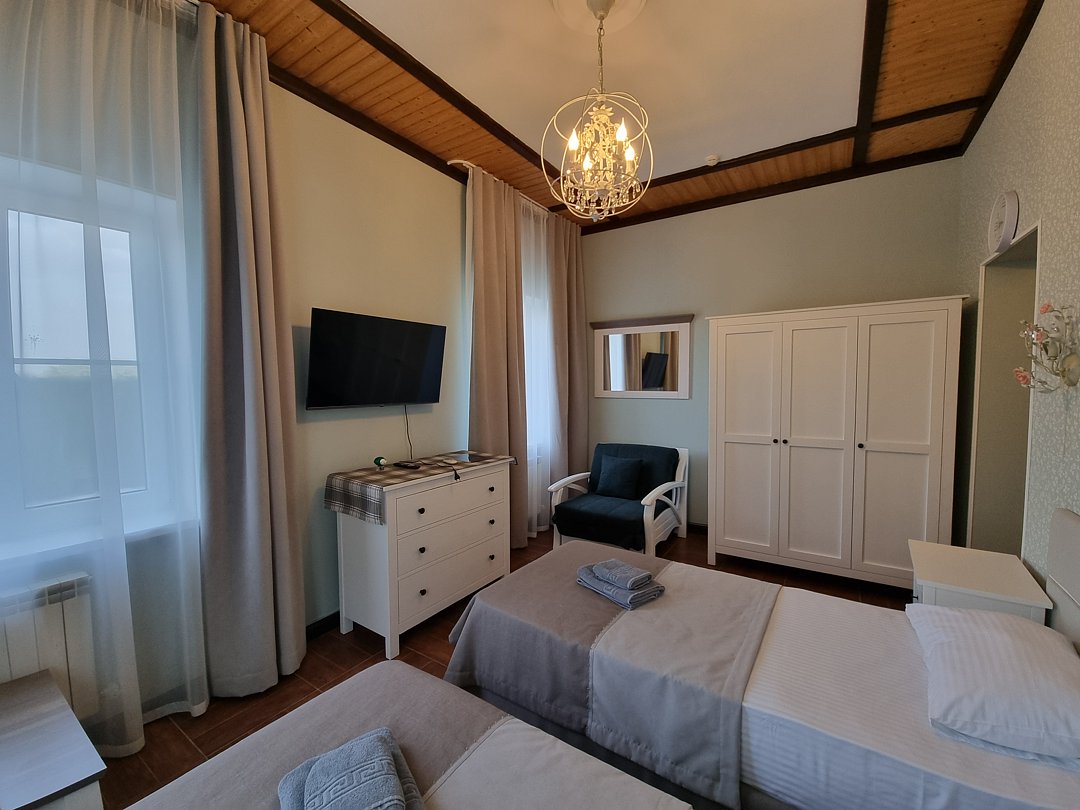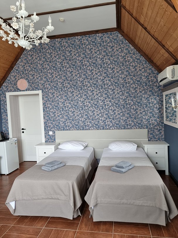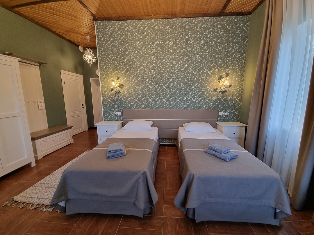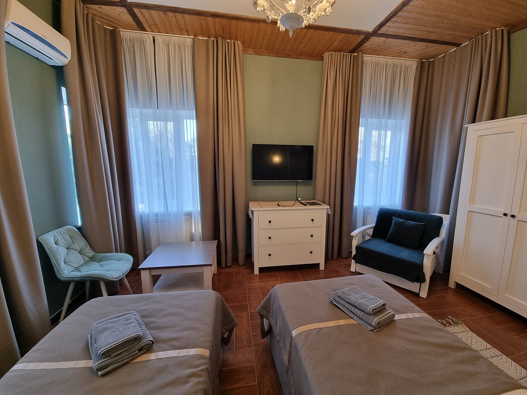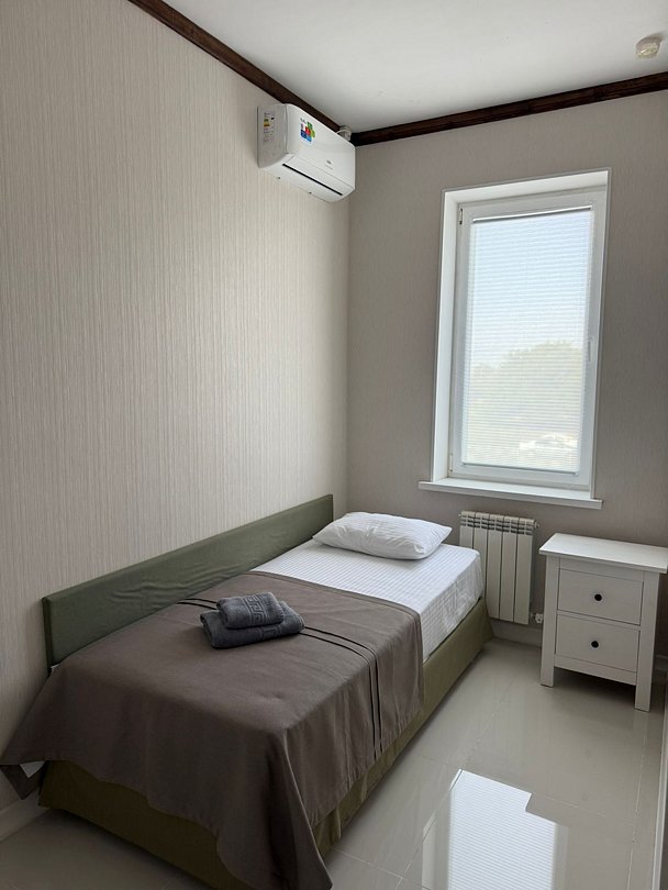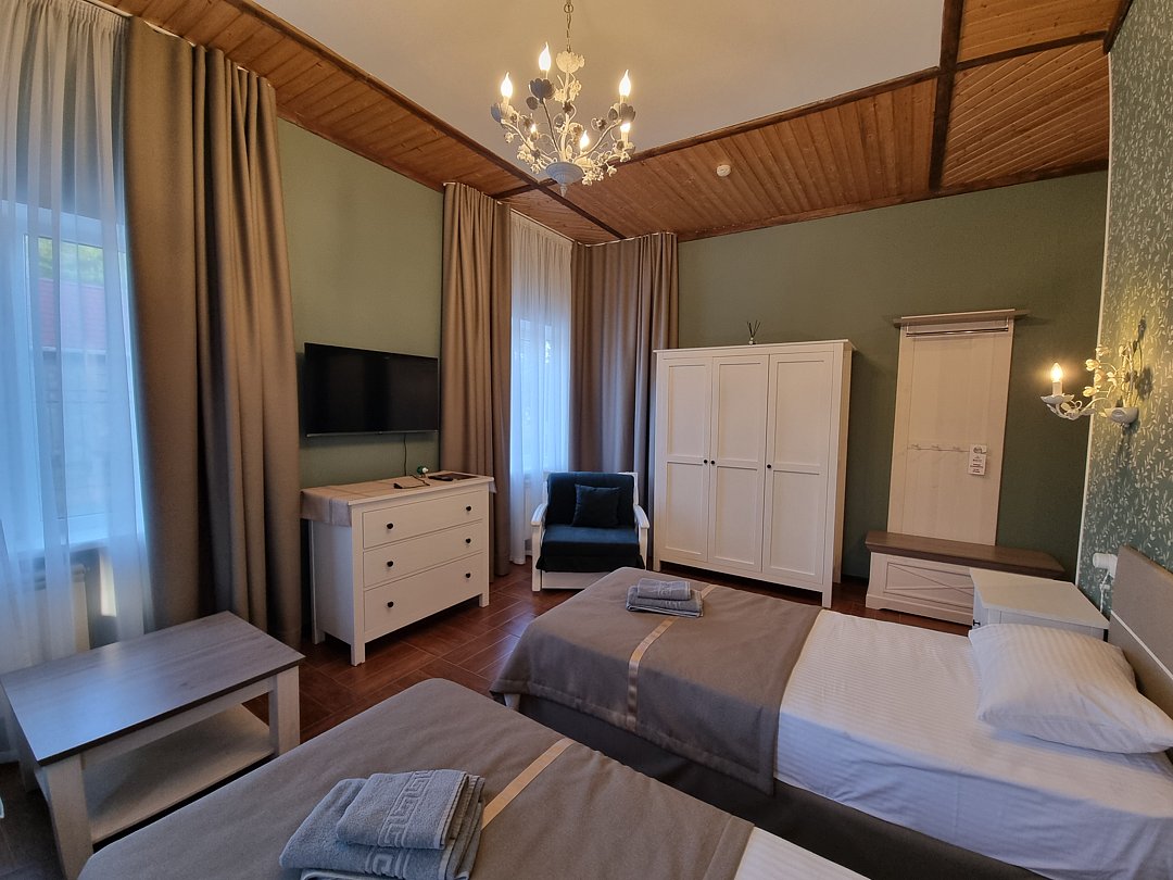 Комфортабельный номер, рассчитанный на размещение 2-х человек. В номере: 2 односпальные кровати, санузел, душ, туалетные принадлежности, халаты вафельные (при размещении более 3 суток), тапочки (при размещении более 3 суток), холодильник, чайник, набор посуды с комплектом столовых приборов, вместительный шкаф с комплектом вешалок, регулируемая система кондиционирования, номер телефона для связи с администратором, пожарная сигнализация, фен, утюг и гладильные принадлежности (по запросу), Wi-Fi. Уборка в номерах производится ежедневно, смена постельного белья и полотенец – каждые 3 дня. Имеется 1 доп.место кресло-кровать.