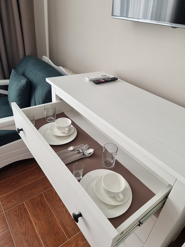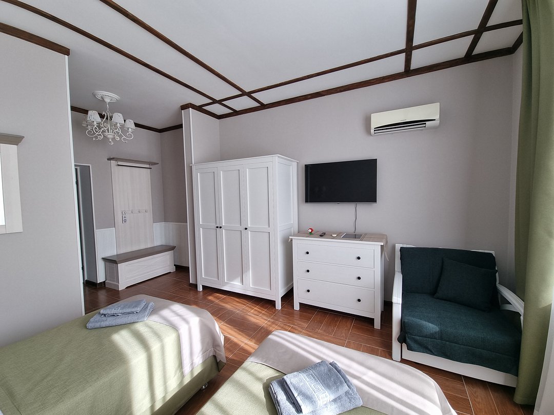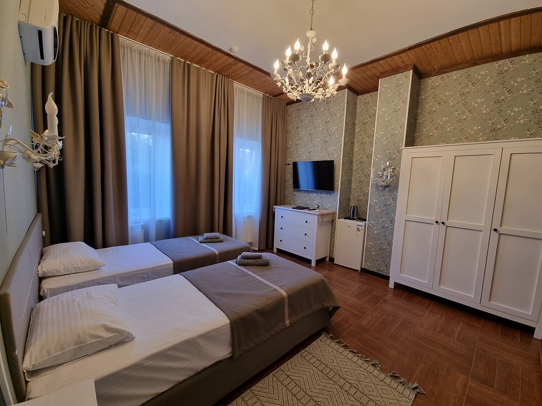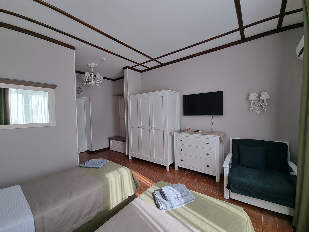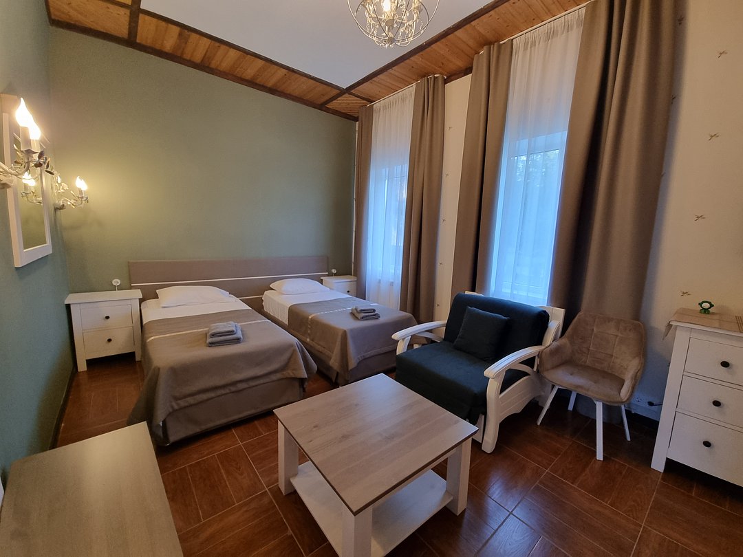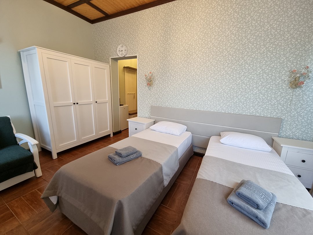 Комфортабельный номер, рассчитанный на размещение 2-х человек. В номере: 2 односпальные кровати, санузел, душ, туалетные принадлежности, халаты вафельные (при размещении более 3 суток), тапочки (при размещении более 3 суток), холодильник, чайник, набор посуды с комплектом столовых приборов, вместительный шкаф с комплектом вешалок, регулируемая система кондиционирования, номер телефона для связи с администратором, пожарная сигнализация, фен, утюг и гладильные принадлежности (по запросу), Wi-Fi. Уборка в номерах производится ежедневно, смена постельного белья и полотенец – каждые 3 дня. Имеется 1 доп.место кресло-кровать.