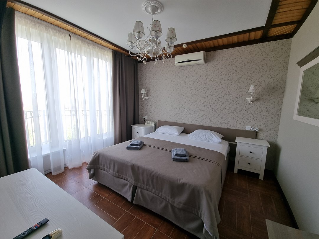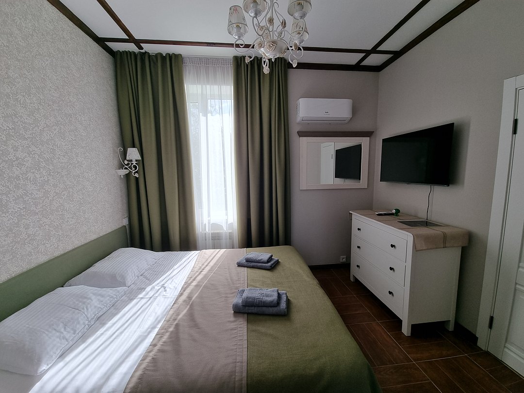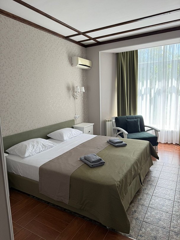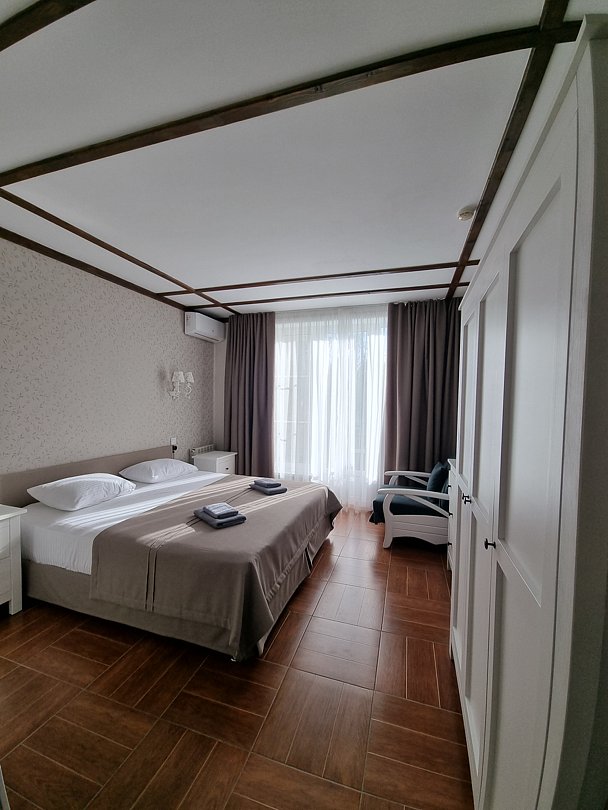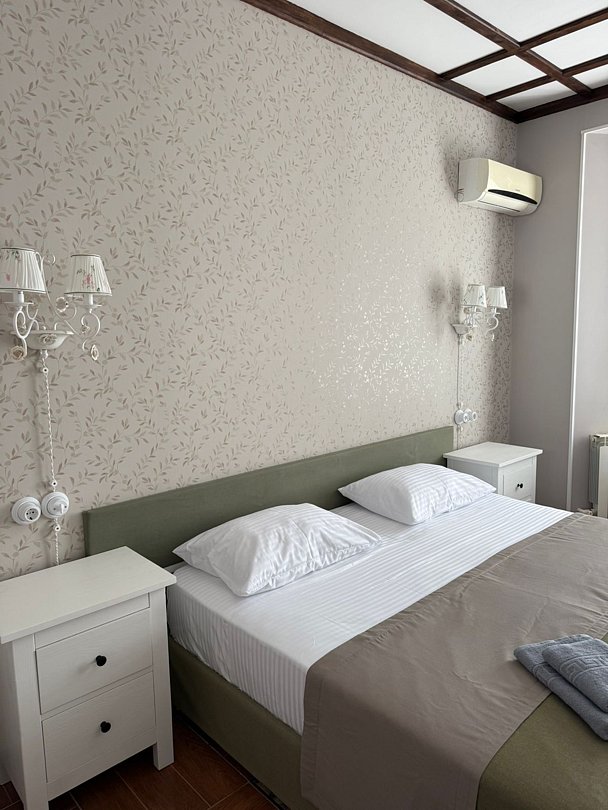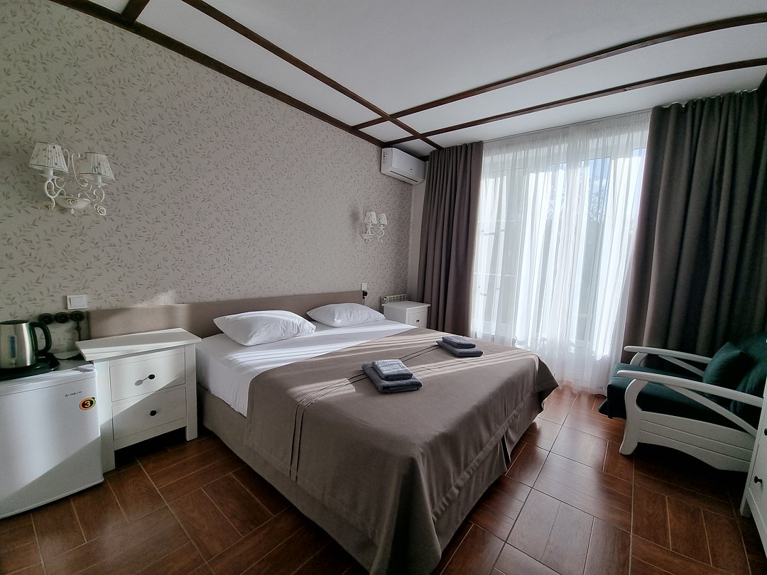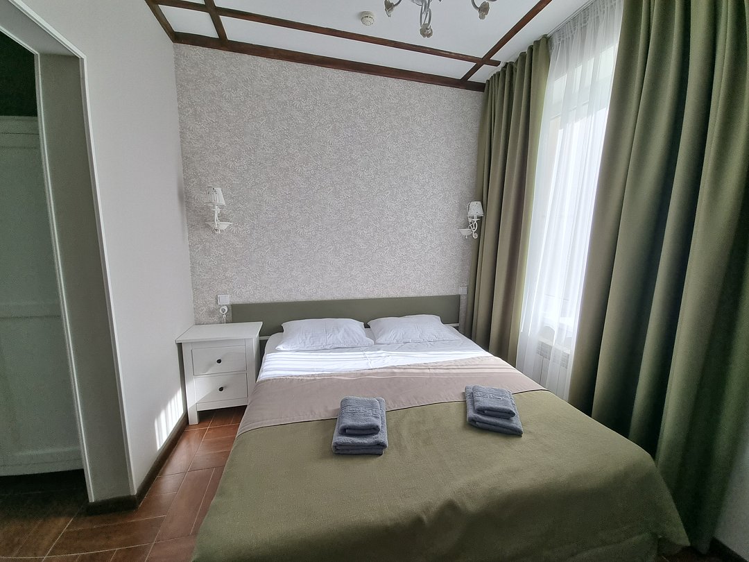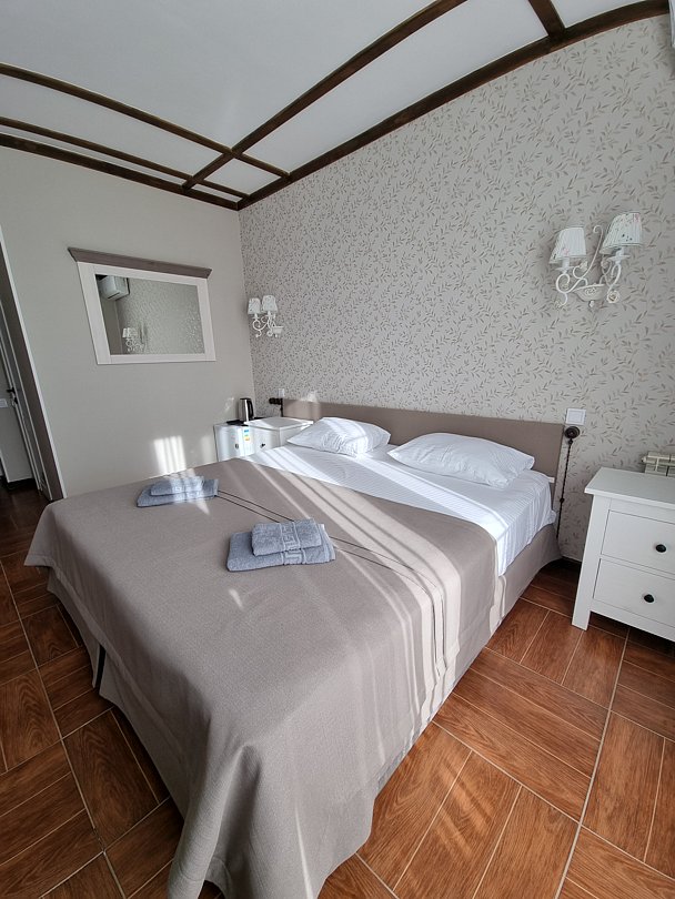 Комфортабельный двухместный номер, рассчитанный на размещение 2-х человек. В номере: двуспальная кровать, санузел, душ, туалетные принадлежности, халаты вафельные (при размещении более 3 суток), тапочки (при размещении более 3 суток), холодильник, чайник, набор посуды с комплектом столовых приборов, вместительный шкаф с комплектом вешалок, регулируемая система кондиционирования, номер телефона для связи с администратором, пожарная сигнализация, фен, утюг и гладильные принадлежности (по запросу), Wi-Fi. Уборка в номерах производится ежедневно, смена постельного белья и полотенец – каждые 3 дня.