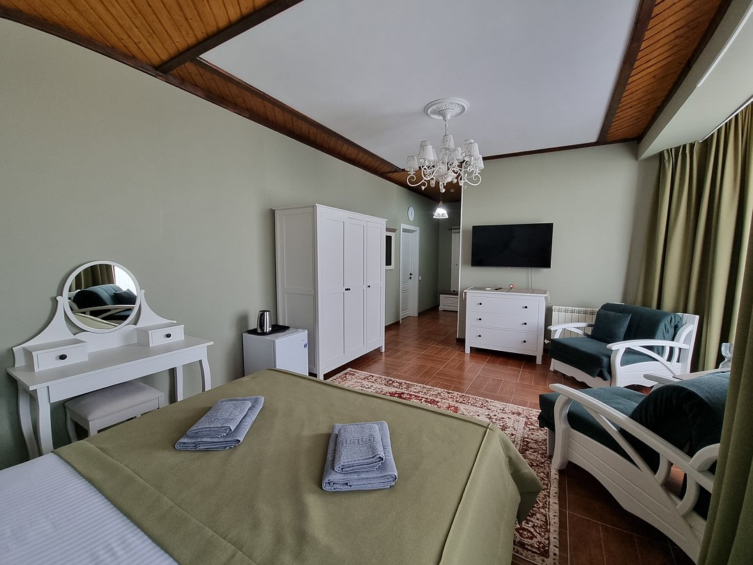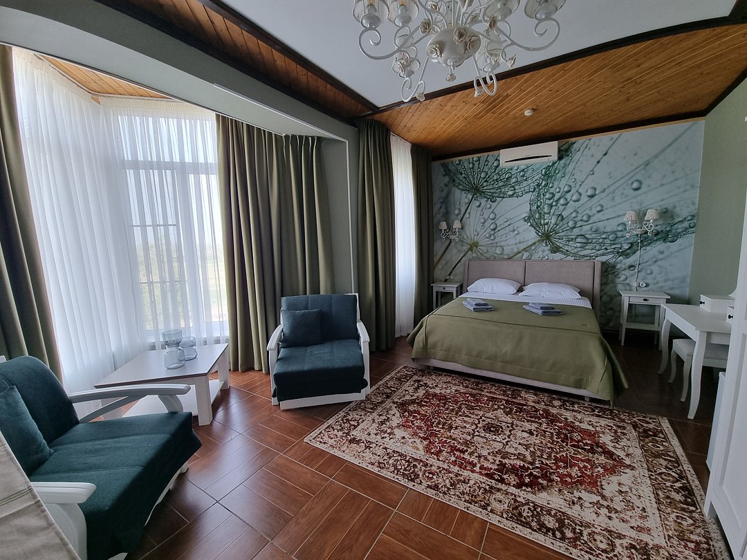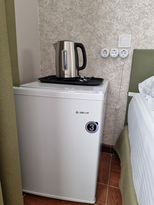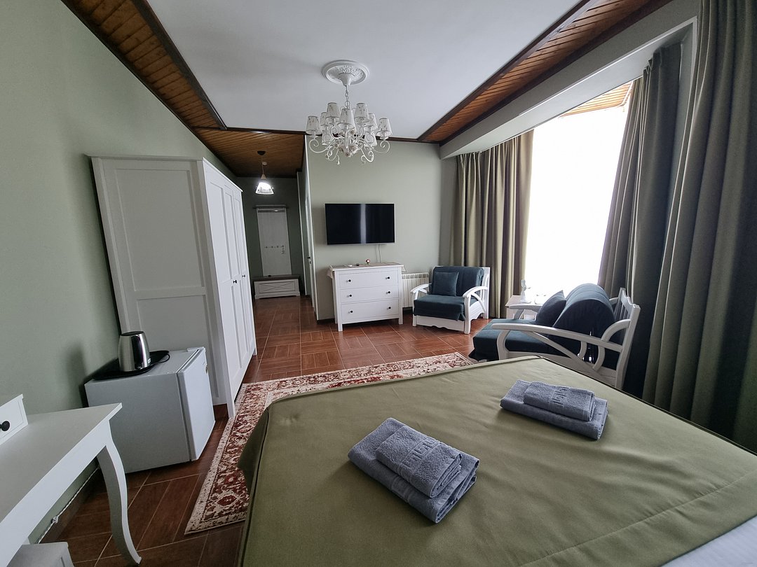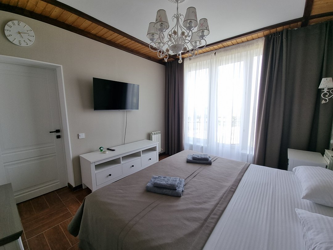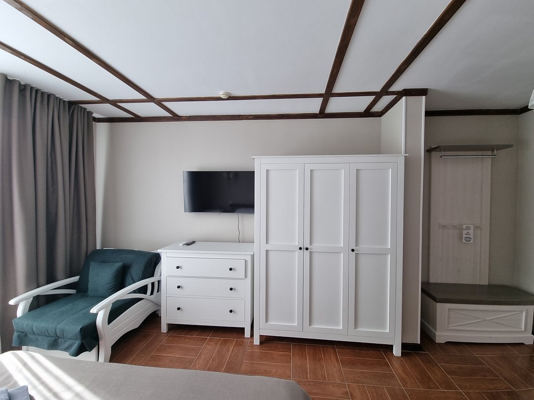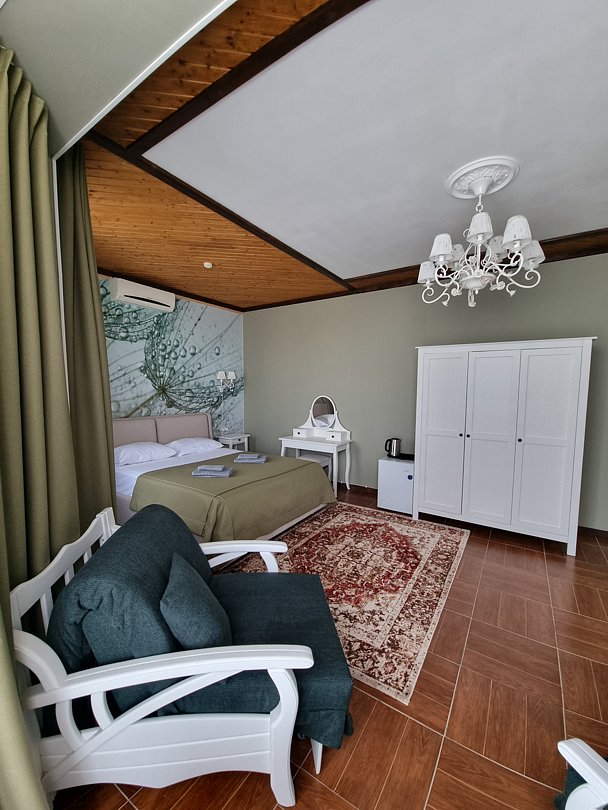 Комфортабельный двухместный номер, рассчитанный на размещение 2-х человек. В номере: двуспальная кровать, санузел, душ, туалетные принадлежности, халаты вафельные (при размещении более 3 суток), тапочки (при размещении более 3 суток), холодильник, чайник, набор посуды с комплектом столовых приборов, вместительный шкаф с комплектом вешалок, регулируемая система кондиционирования, номер телефона для связи с администратором, пожарная сигнализация, фен, утюг и гладильные принадлежности (по запросу), Wi-Fi. Уборка в номерах производится ежедневно, смена постельного белья и полотенец – каждые 3 дня.