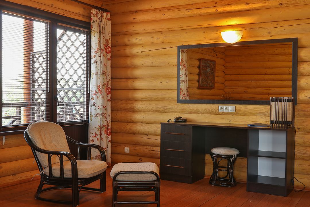 Особняком, на самом деле настоящим деревянным особняком, стоит относительно новый "летний" корпус. Потрясающее зодчество из кругляка и непередаваемый уют! В следующий раз мы непременно будем жить в этом корпусе! А в том, что мы обязательно поедем именно в "Бегущую по волнам" - нисколько не сомневаюсь. Главным критерием помимо уюта, является спокойствие и тишина, которых на территории "Бегущей" в избытке. Доносятся, конечно, децибелы из самого поселка, но, пластиковые окна и кондиционеры решают. А на территории дома отдыха загулы гостей - не приемлемы, в отличие от других загородных отелей 😉