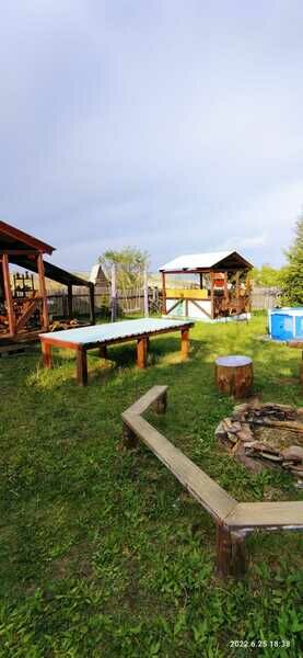 На территории: беседки, мангальныне зоны, кухня летняя с горячей водой.