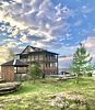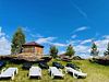Второй уровень (мансардный этаж) — две односпальные кровати с мягкими изголовьями (комфортно сдвигаются в одну), раскладное модульное кресло, комод, тумбочка, телевизор. Вид с мансарды на озеро, горы, Храм.