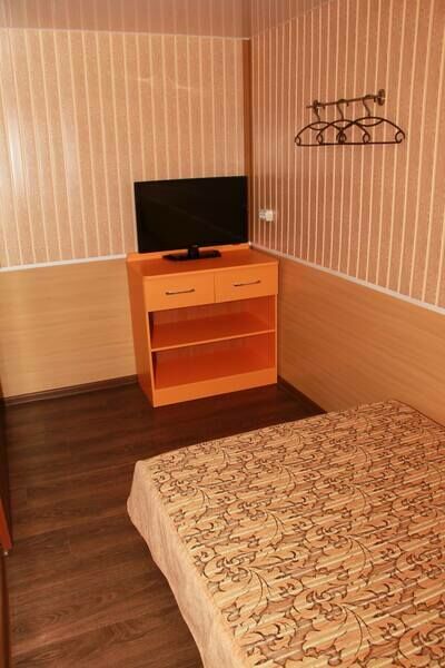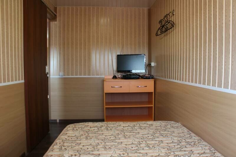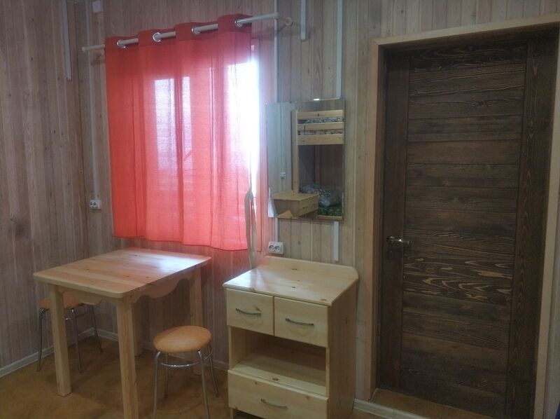 В номерах на 2-3 человека — две односпальных кровати (комфортно сдвигаются в одну) и раскладное кресло. В номерах на 3-4 человека — двуспальная кровать и добротная двухъярусная. Комоды из натурального дерева, тумбочки, обувницы, телевизор, обеденная зона, кухонный гарнитур, холодильник, плита, СВЧ, посуда для приготовления и сервировки, кухонная утварь.