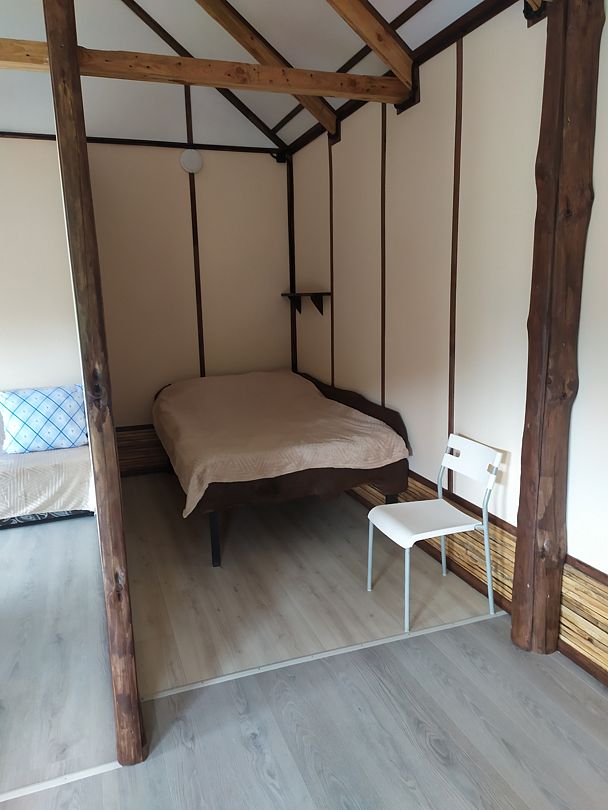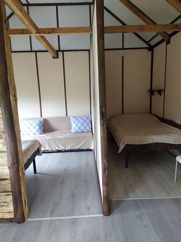 Всесезонное размещение с собственной кухней-гостиной, с просторной спальной и ванной комнатой. Подойдет как для романтического свидания вдвоем, так и для отдыха семьей, и в дружеской компании. Комфортное пребывание вам обеспечит кондиционер, отопление, горячая вода в душе, мягкие полотенца, мыльные принадлежности, тапочки, огромный холодильник, микроволновая печь, кастрюли, тарелки, ножи, чайник, спутниковое ТВ в каждой комнате, двуспальная кровать, диван-кровать и раскладное кресло.