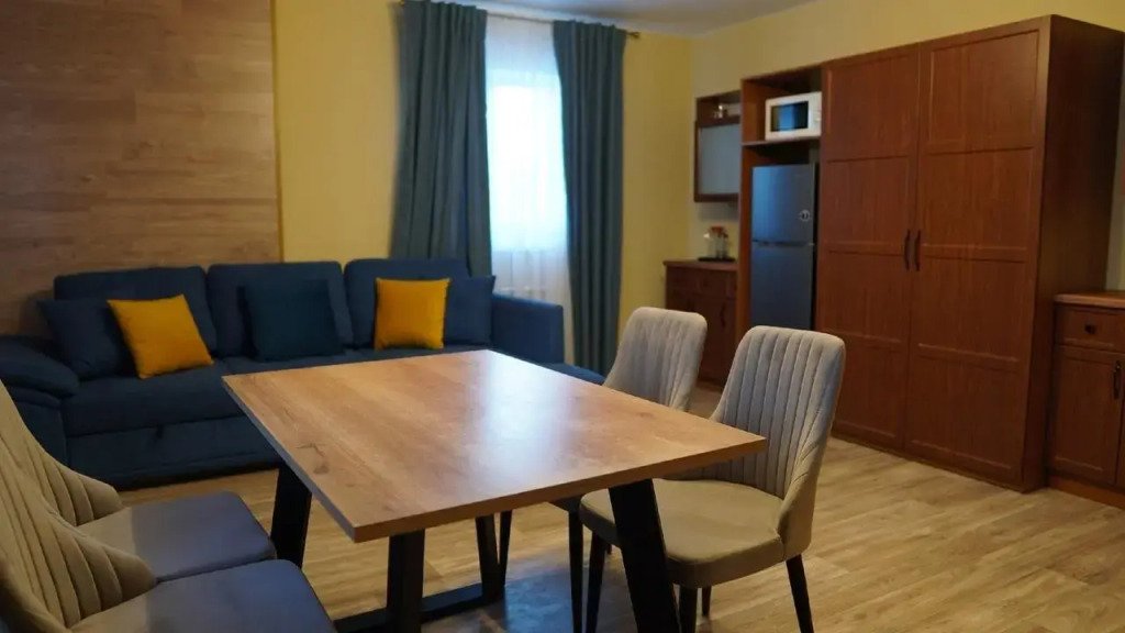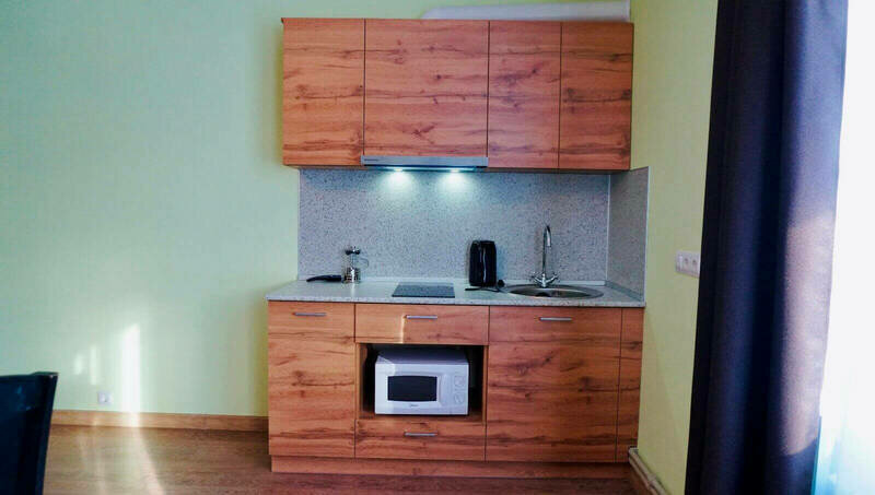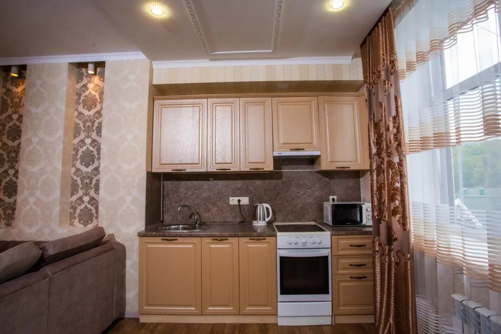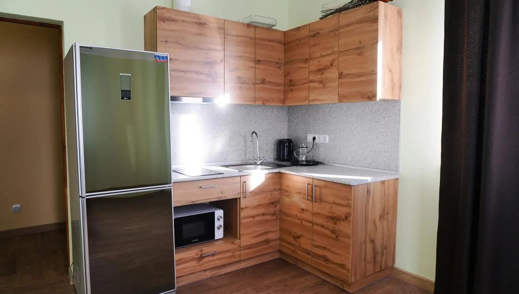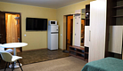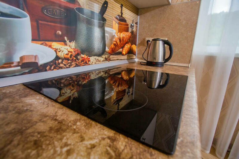 Уютный номер с двухспальной кроватью, собственной кухней и ванной комнатой.