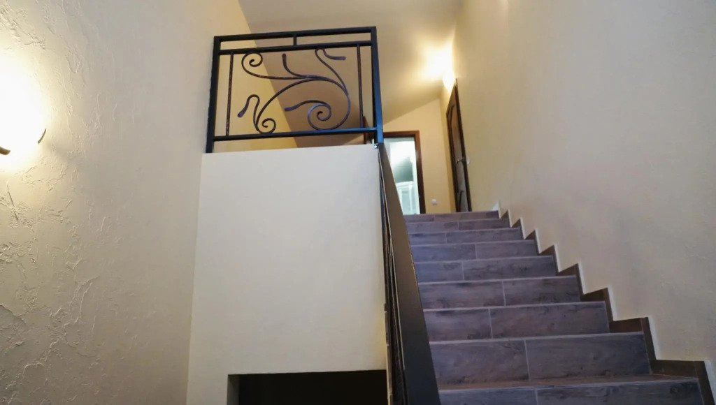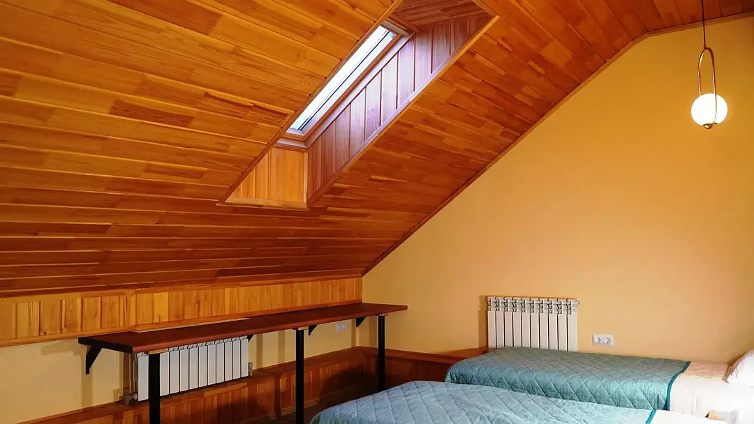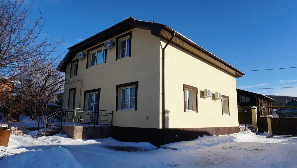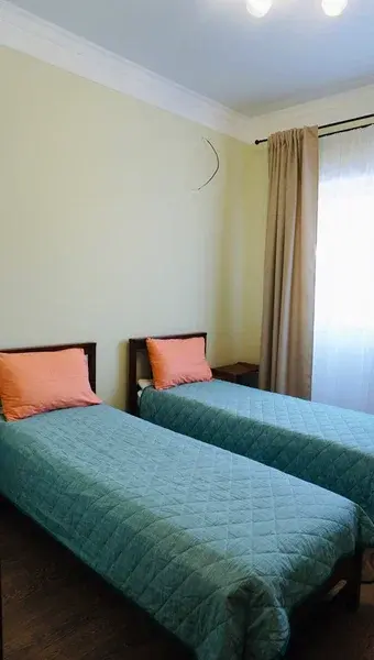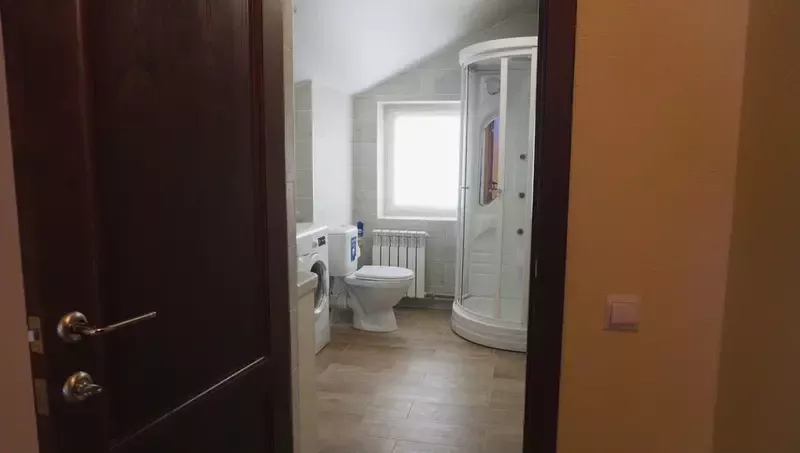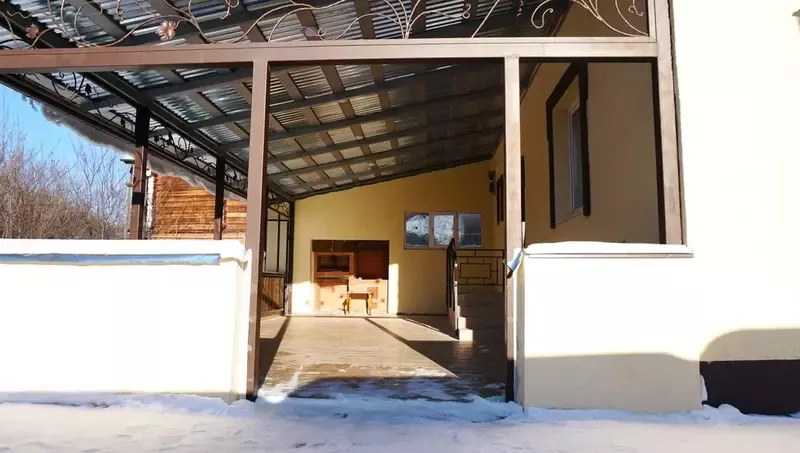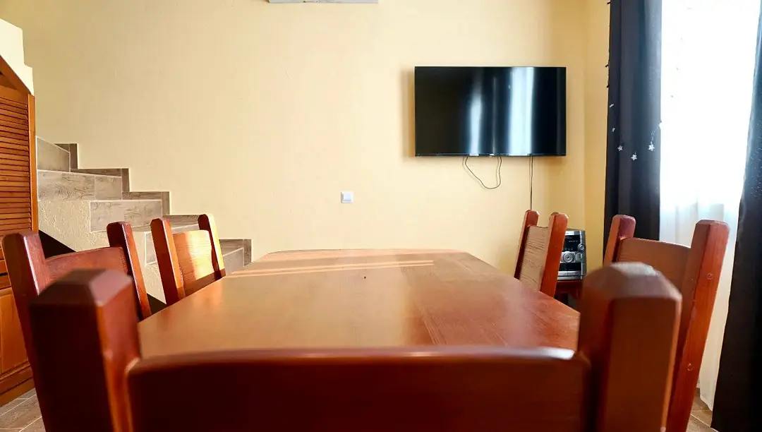В доме большая гостиная, оборудованная кухонной зоной, микроволновая печь, электроплита, холодильник, посуда для приготовления и сервировки стола, большой диван, стол на 15 посадочных мест, три уютные спальни, в которых имеются 2-сп и 1, 5-сп кровати, телевизоры в каждой комнате, комоды. Есть шкаф для одежды. Две душевые комнаты и санузела. Рядом с домом мангальная зона.