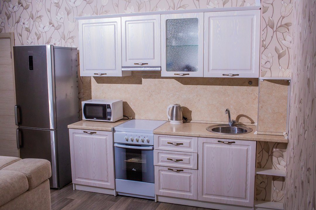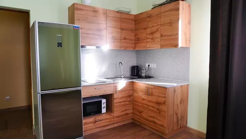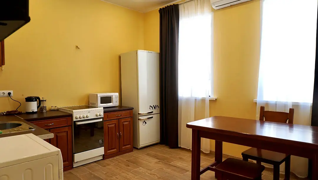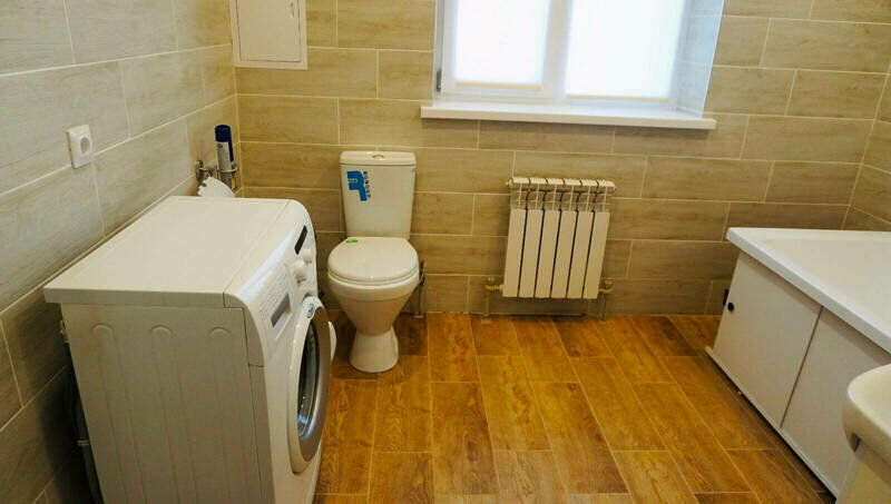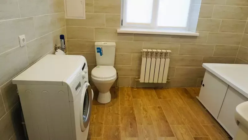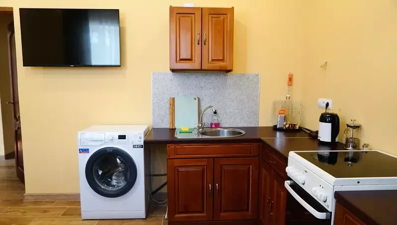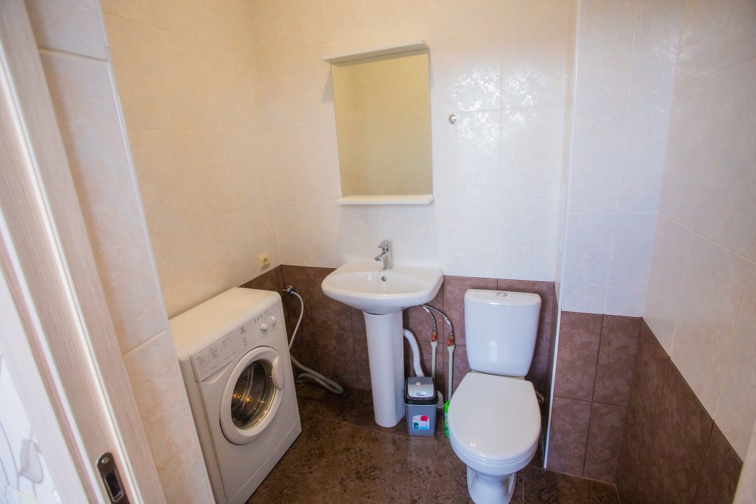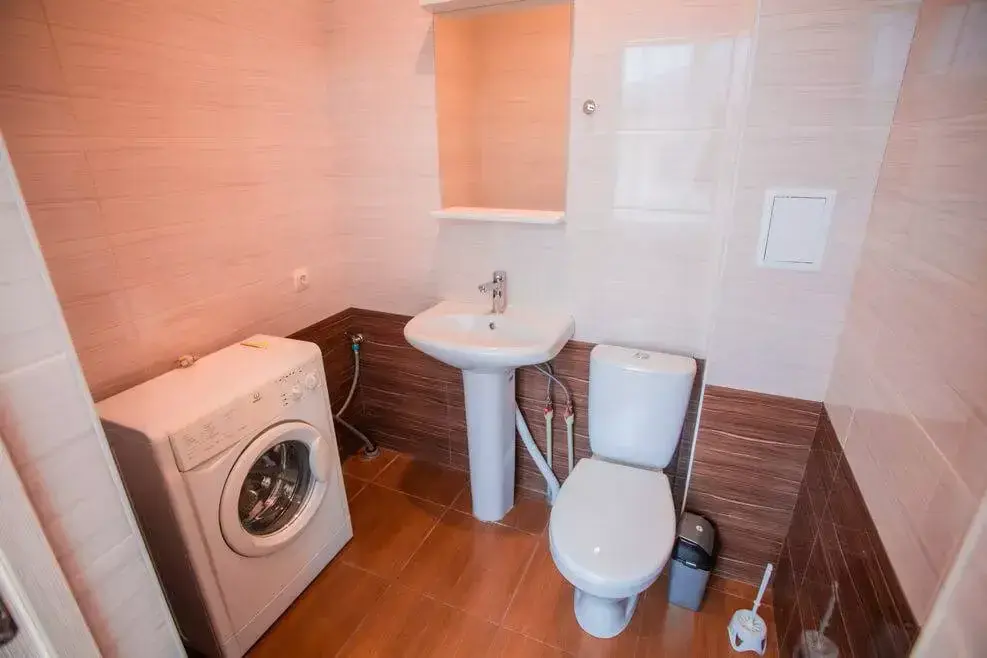 Современно, чисто, аккуратно. Всё есть: даже стиральная машина. Просторно, комфортно.