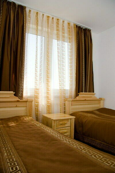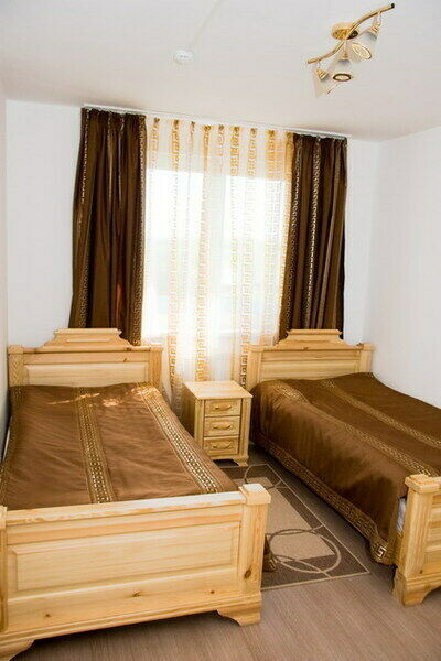 В комфортабельных номерах: спутниковое ТВ, мини-бар, санузел с душевой кабиной, вся мебель из натурального дерева.