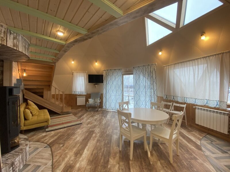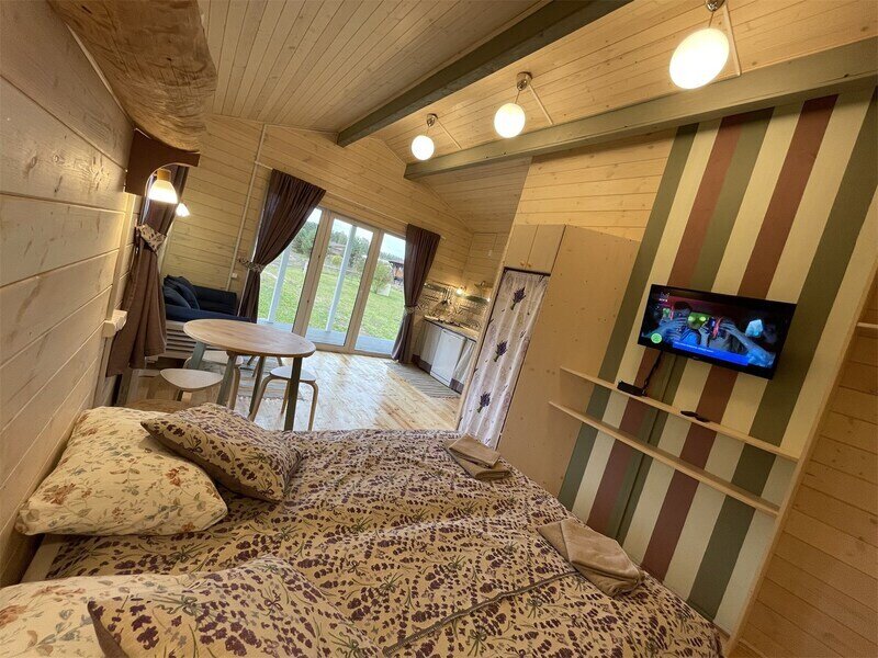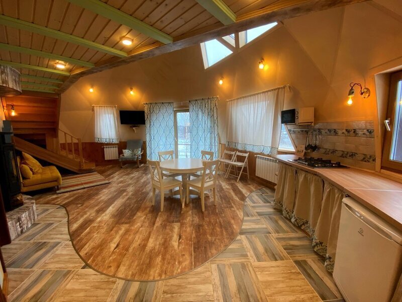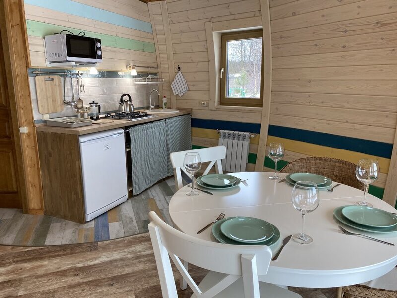 авг. 2021 г.Отдых в каравнеОчень хороший эко-отель, хоть и довольно дорогой. Хорошее местоположение вблизи леса. Видно, что над территорией потрудился ландшафтный дизайнер. Очень красиво сделана посадка деревьев, цветов и кустарников. Так же хорошее расположение беседок и мангалов. Жили 3 ночи в коттедже с камином. Очень классно и атмосферно. Есть кухня прямо в коттедже (разделен на 2 части независимых, но шумоизоляция хорошая. Камин хороший, качественный, топится хорошо, если приноровиться. Есть телек с триколором. Свой собственный санузел с душем. Только вот вместо двухспальной кровати - две одноместные сдвинутые вместе. Рядом с коттеджем гамак, очень клево, прямо под деревьями, можно хорошо порелаксировать. Очень удачно сделано озеленение возле коттеджа. Есть экотропа. Много интересных мест куда можно сходить и посидеть отдохнуть. Много качелей.Есть столы для настольного тенниса. Администрация доброжелательная, приятная в общении. Шикарная баня, заказали на 2 часа, но это мало. Лучше брать на 4. Покатались на лошадях, инструктор Тур хороший, но программа показалась сложноватой для новичка впервые севшего на лошадь. В общем очень понравилось, но теперь перечислю минусы для улучшения сервиса (вдруг администрация читает трипадвизор):