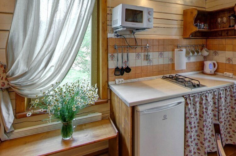 Санузел с душем, ТВ, оборудованная мини-кухня, камин