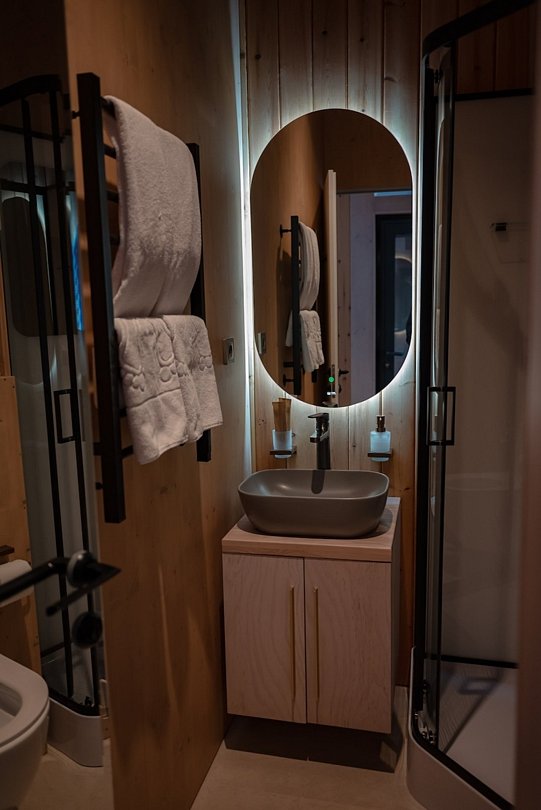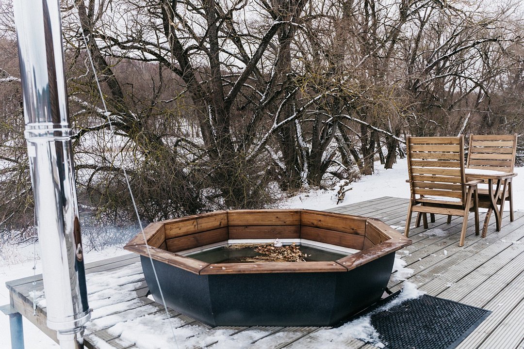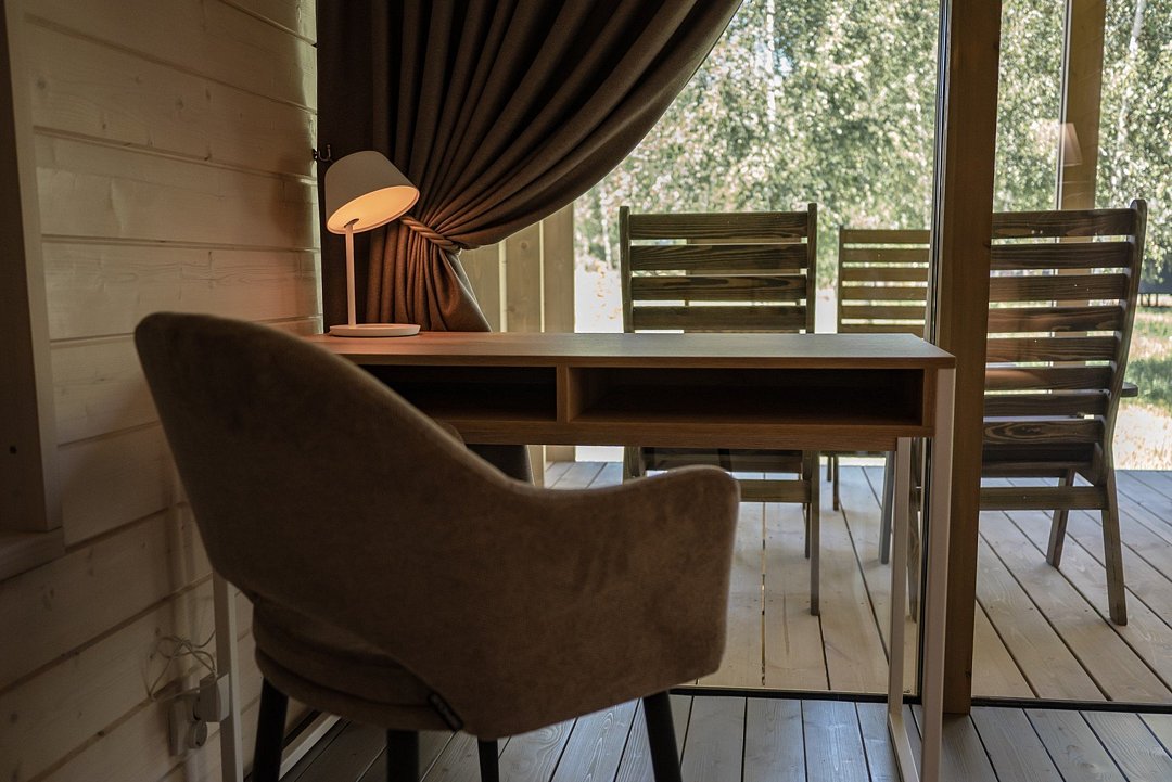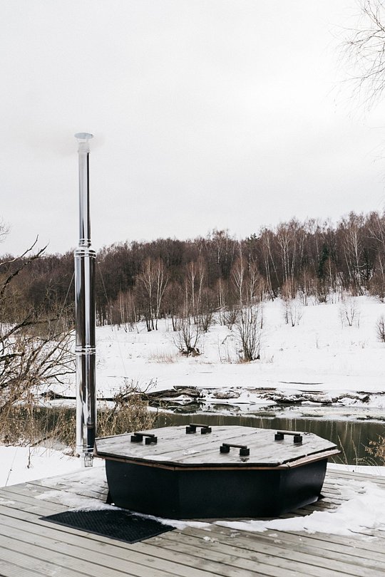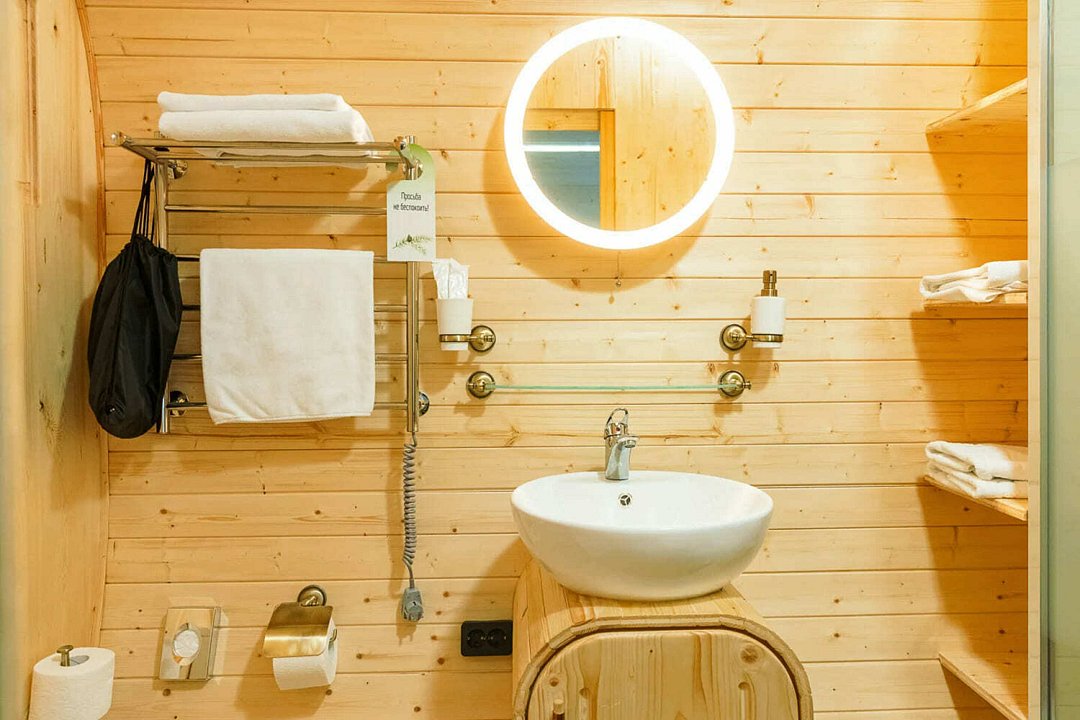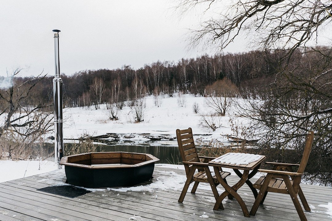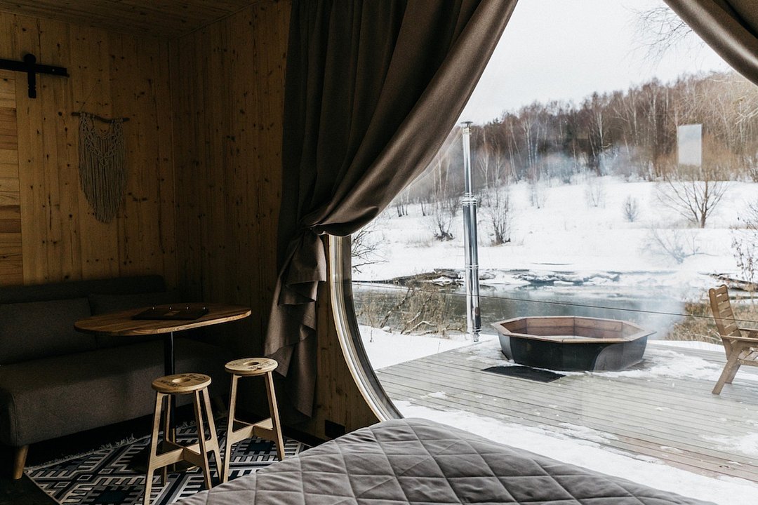 Главное отличие этого номера — чан с подогревом, который расположен на террасе с видом на реку. Уютный, отдельно стоящий домик-капсула оснащен большим панорамным окном с зеркальным напылением. Комфортное проживание для двоих.