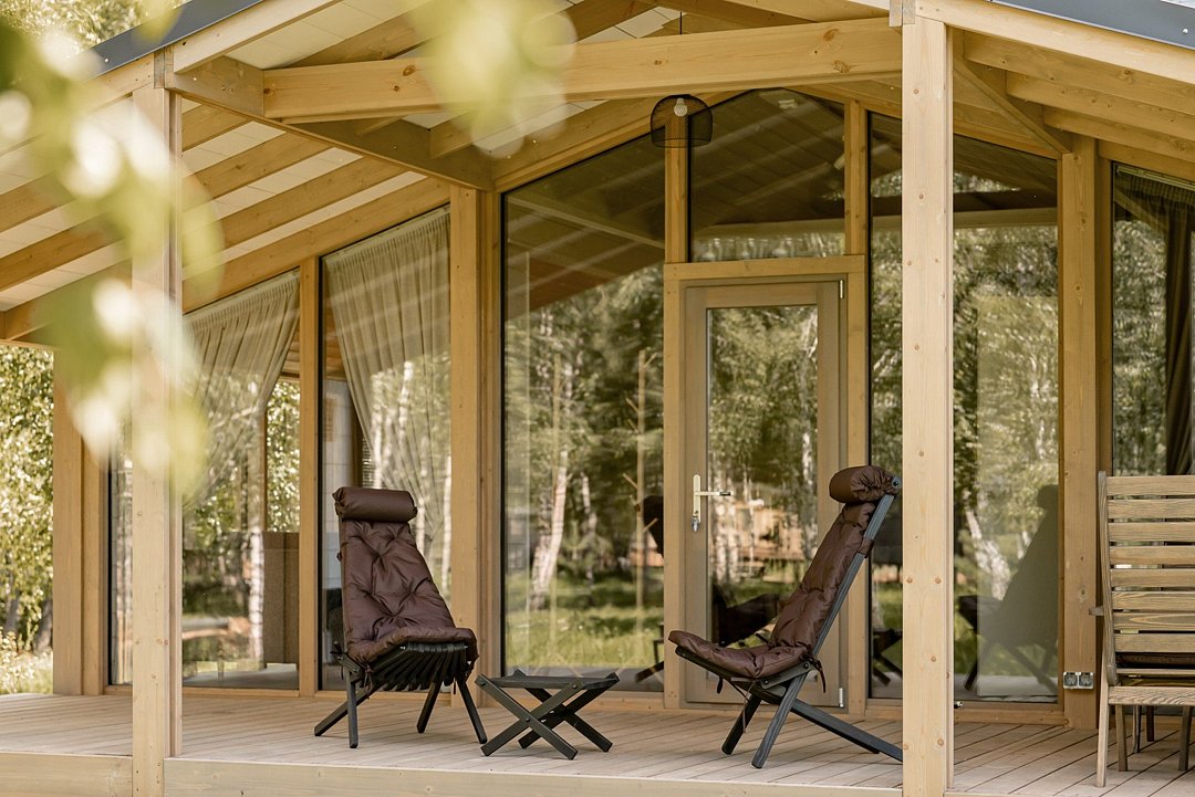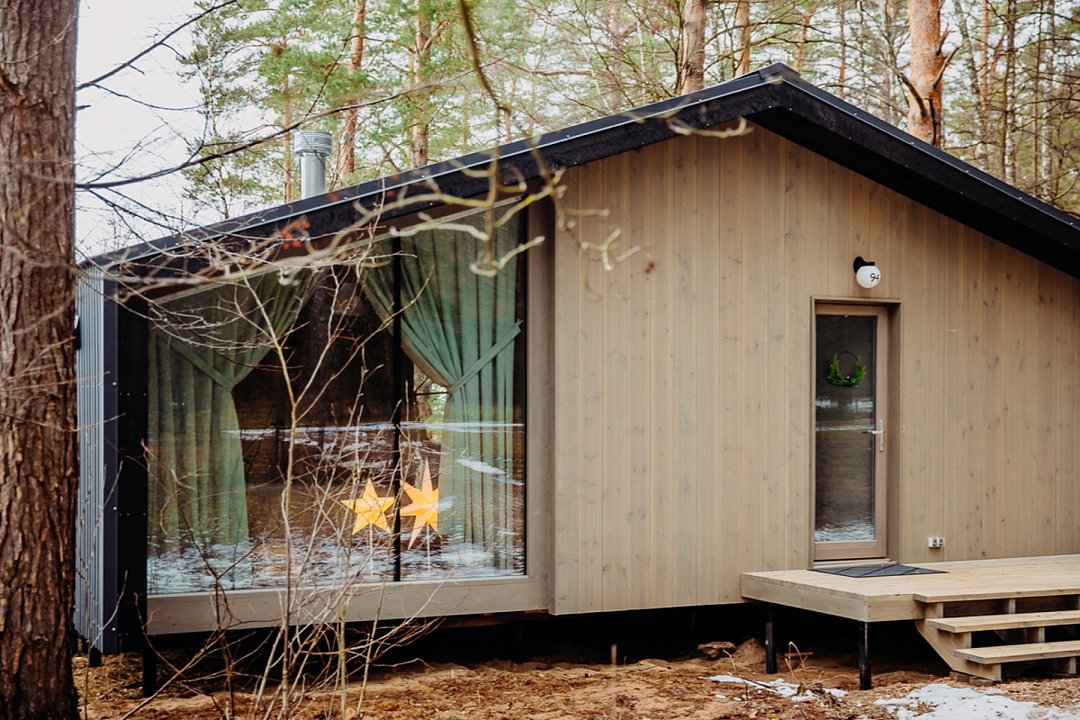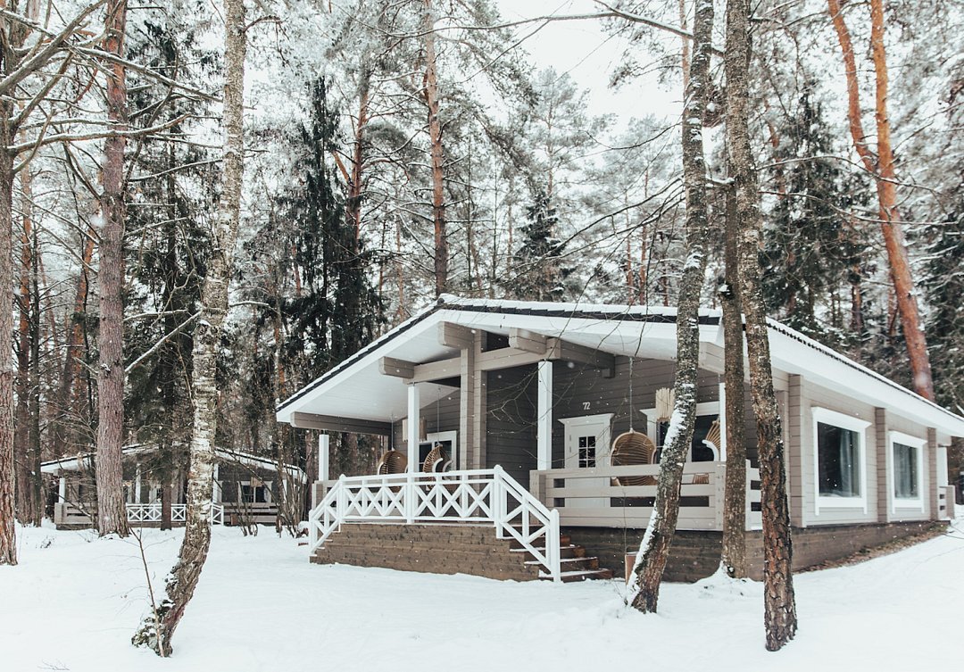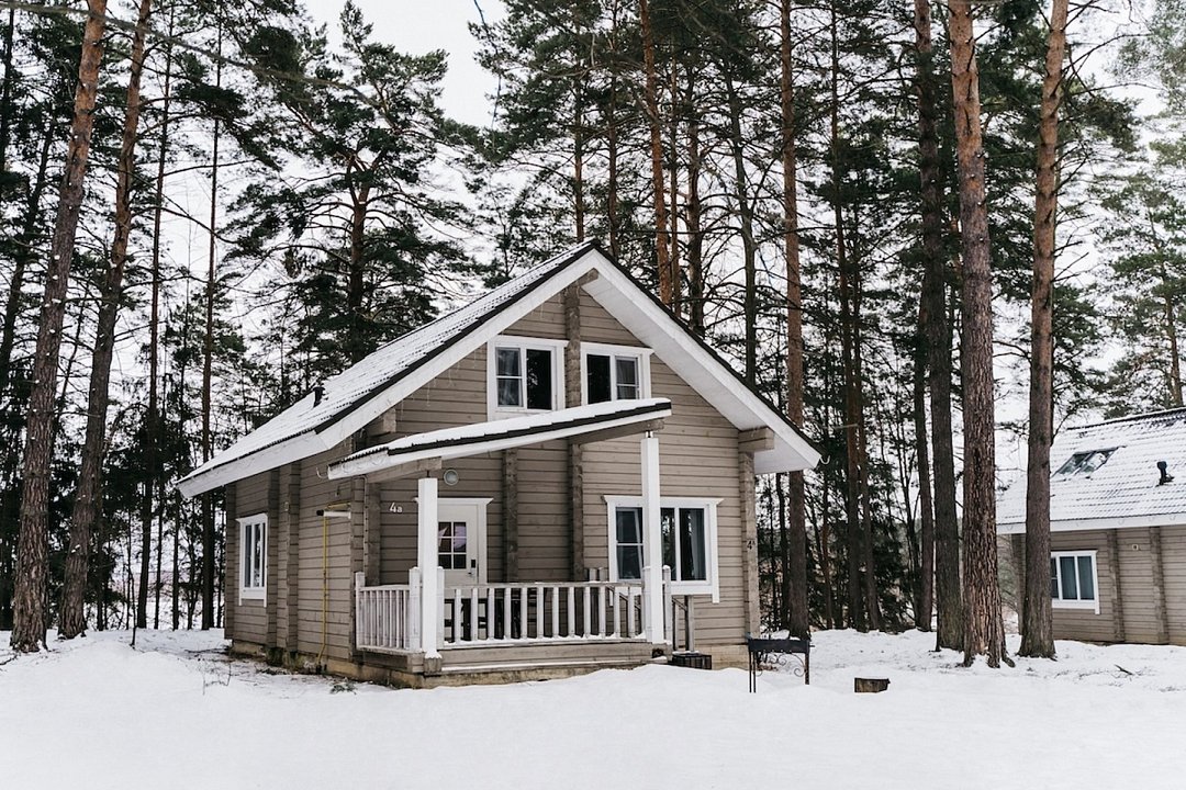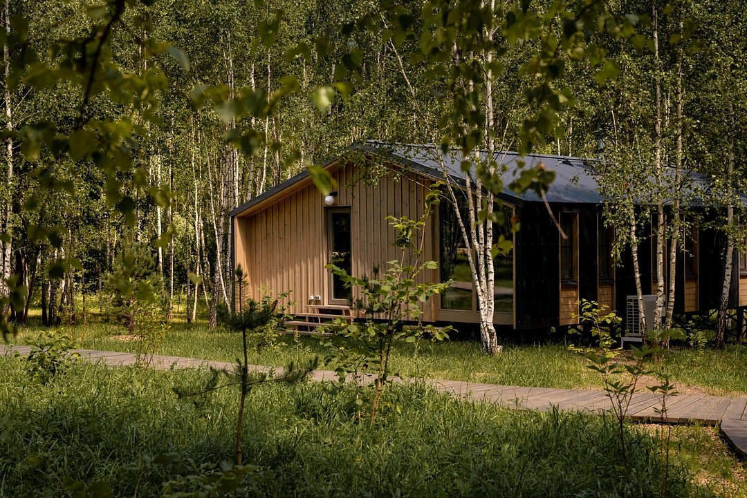 Уютные домики, расположенные в живописном сосновом лесу, создают атмосферу маленького уголка Скандинавии.