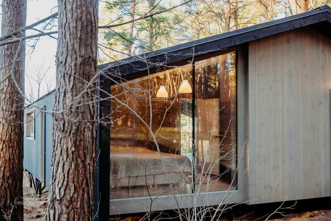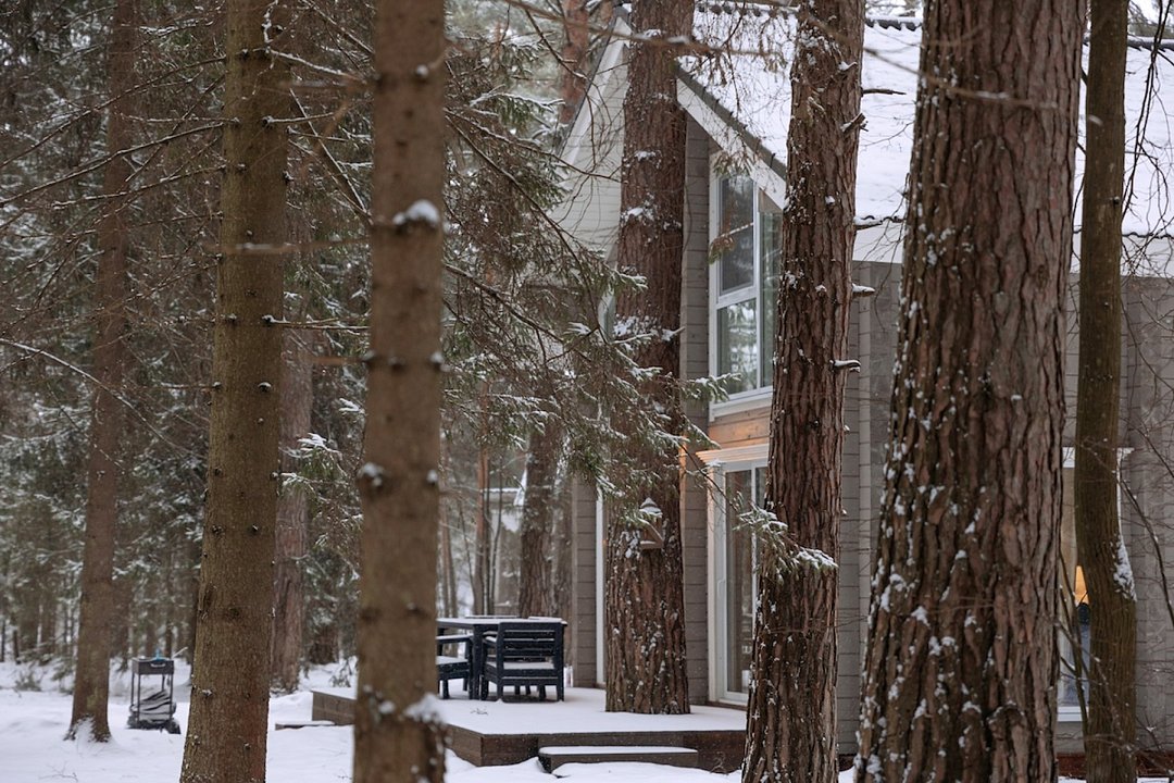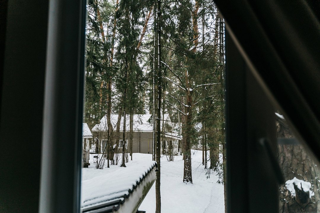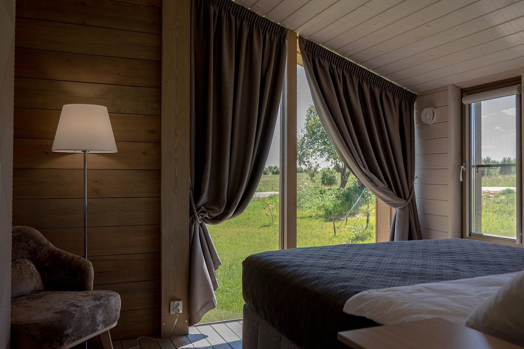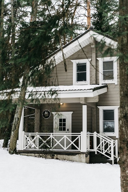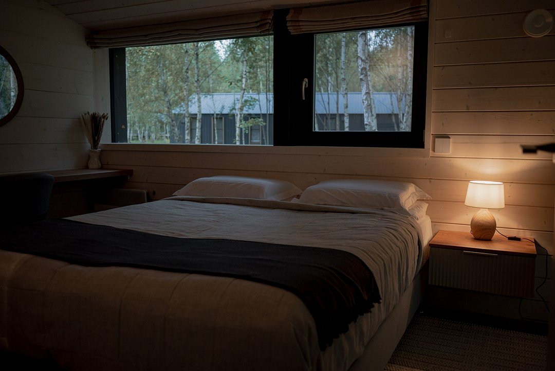 Уютные домики, расположенные в живописном сосновом лесу, создают атмосферу маленького уголка Скандинавии.
