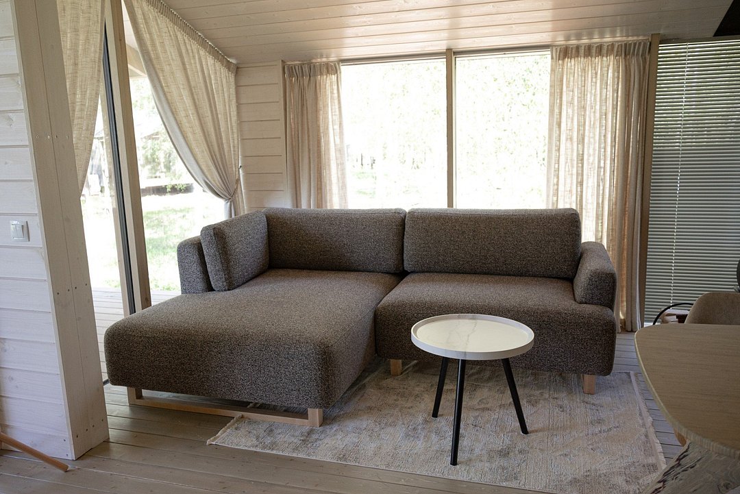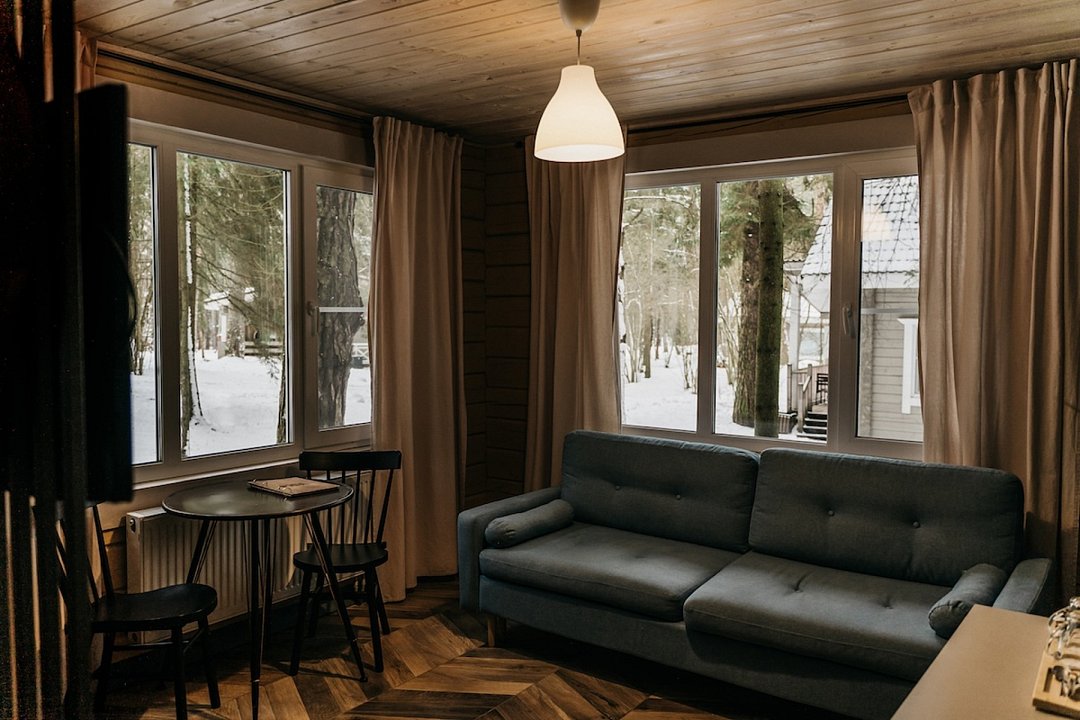 Коттедж с просторной гостиной и стильным дизайнерским интерьером создан для самого уютного отдыха с близкими — он вмещает до 4 человек (2 основных места, 2 дополнительных).