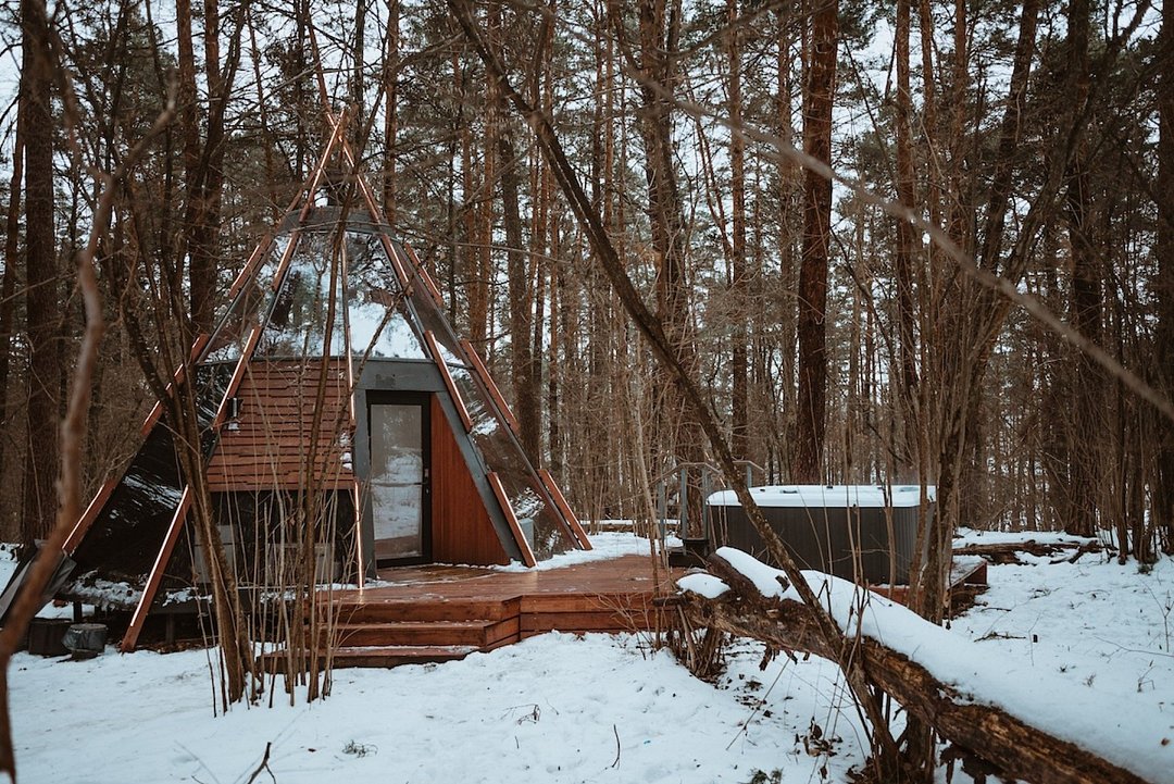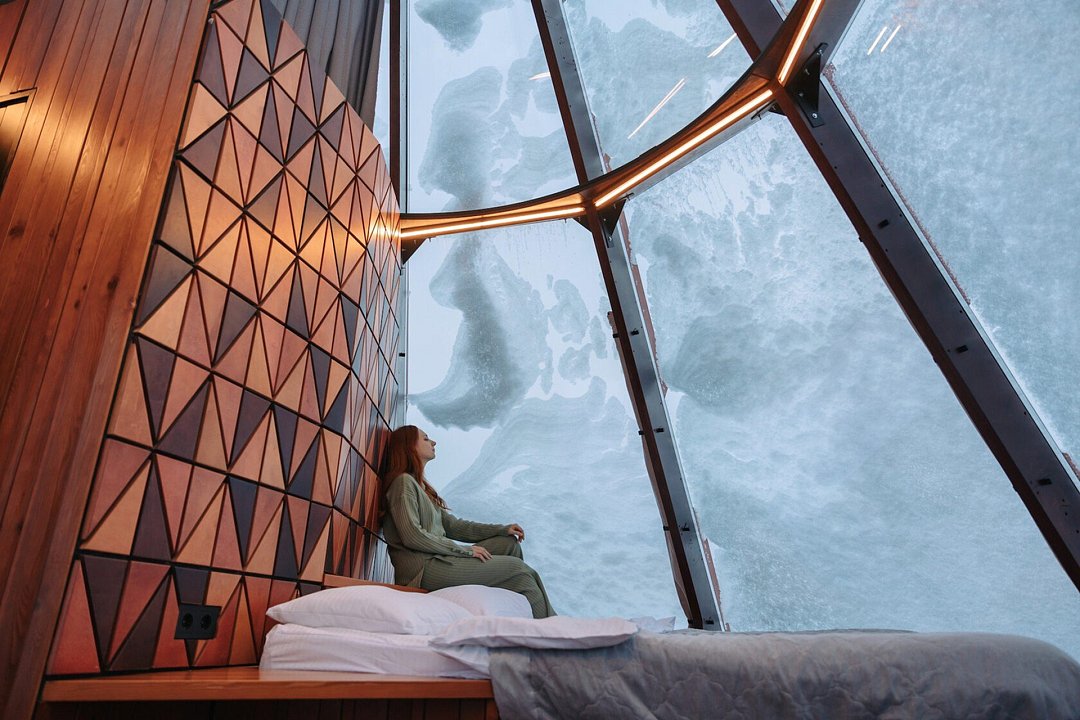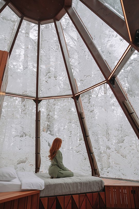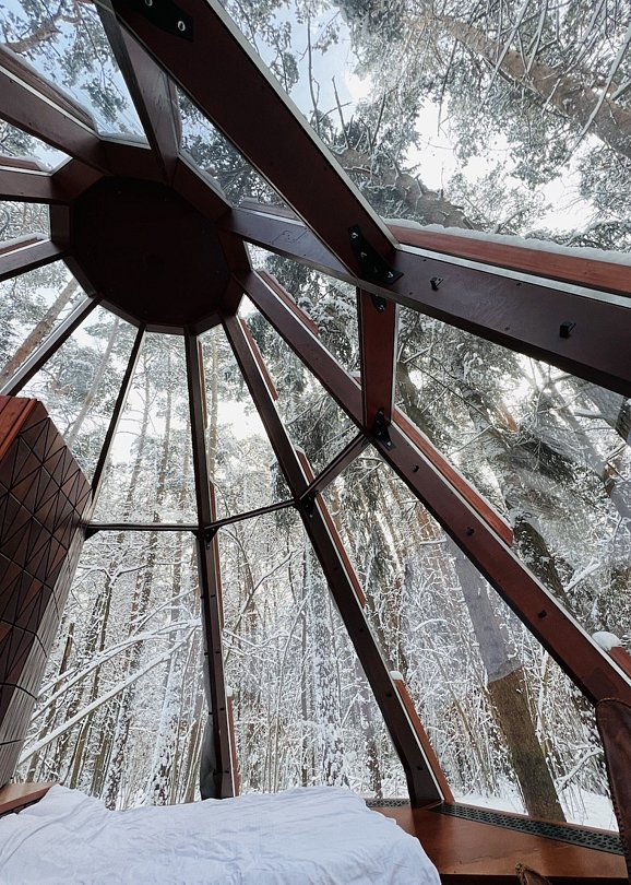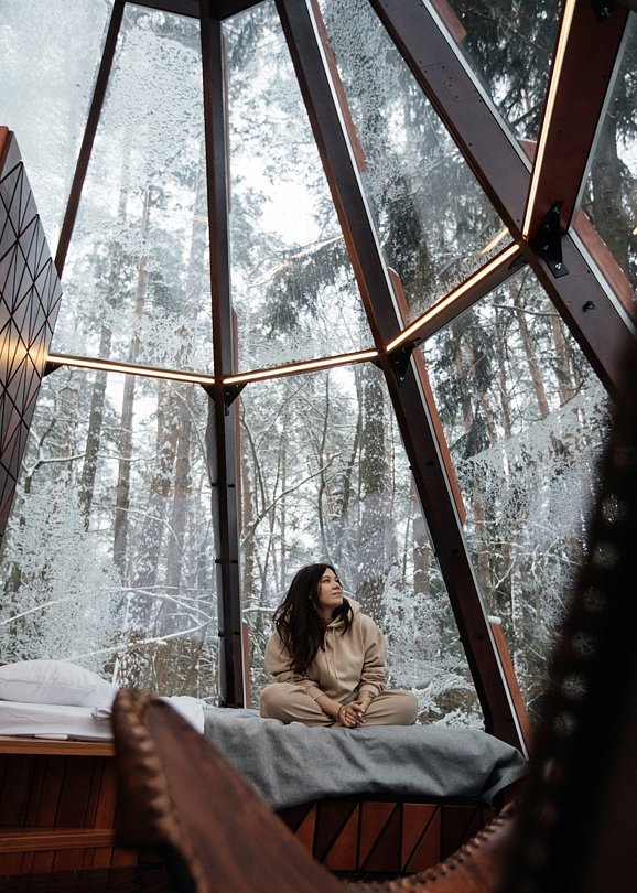 Уникальный номер, не имеющий аналогов в мире. Со стеклянными стенами в самом сердце леса. Только вы, природа и тишина. Доступен в любое время года.