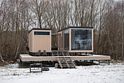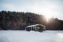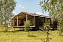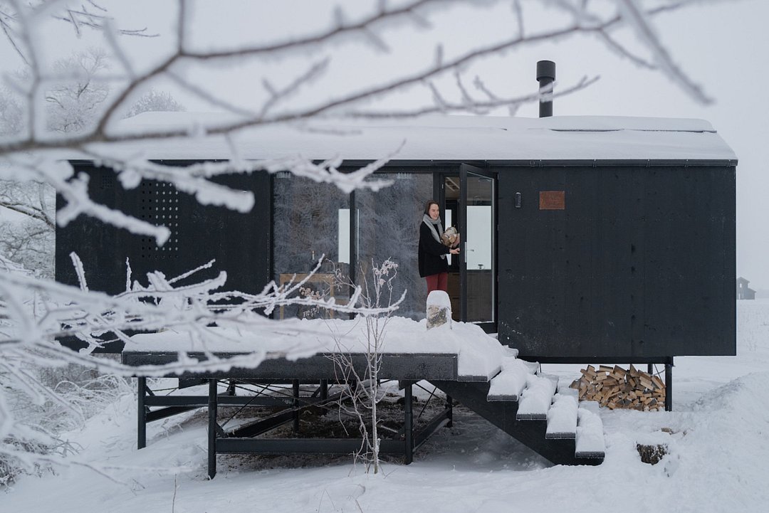 Модульный дом с кухонным уголком и большими панорамными окнами. Доступен для проживания в любое время года. Находится в отдалении от центральной части отеля.