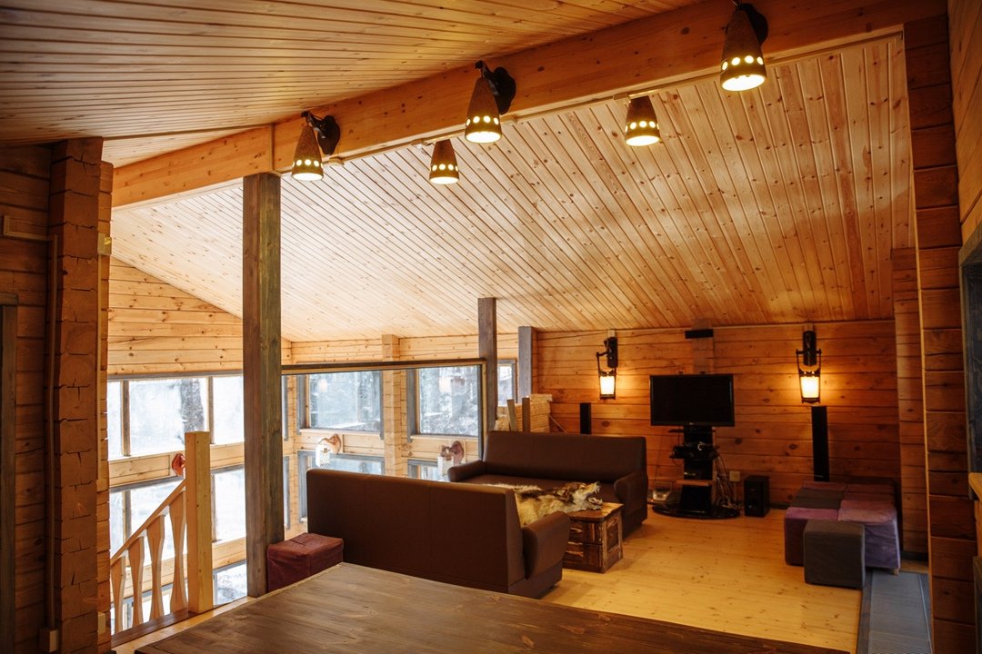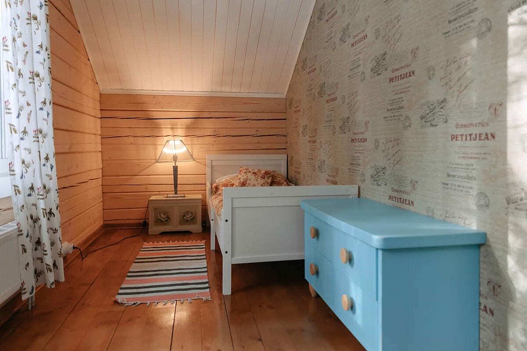 Двухэтажный коттедж с просторной гостиной идеально подойдет для большой семьи — он вмещает до 6 человек (4 основных места, 2 дополнительных).