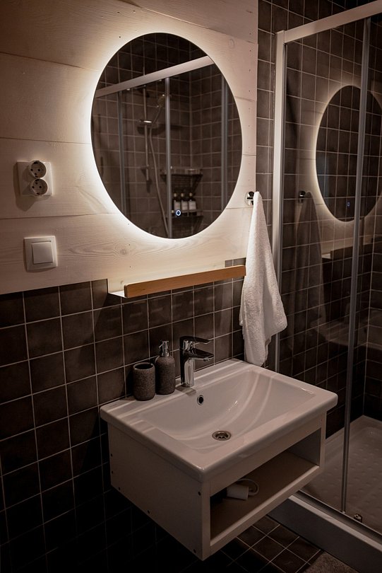 Особенность этого номера — всесезонный джакузи под открытым небом. Просторный номер 32 кв м с футуристическим дизайном укомплектован всем необходимым для комфортного отдыха.