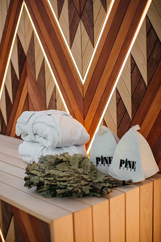 Инфраструктура: тапочки, бассейн, зона отдыха, полотенца, простыниМинимальное время аренды: 2 часаСауна «PineRiver» — это отдых и очищение для души и тела. На первом этаже расположены парилка, душевая и небольшой бассейн c прохладной водой, а на втором можно расслабиться и выпить травяного чаю в уютной зоне отдыха. Для тех, кто любит контрасты — открытая веранда, идеальная для барбекю, бокала вина и приятных бесед на свежем воздухе.