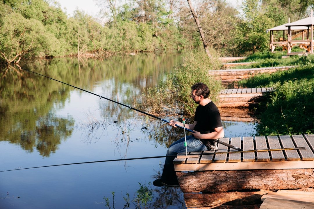На территории отеля есть все необходимое для любителей посидеть с удочкой — даже собственное озеро с родниковой водой.