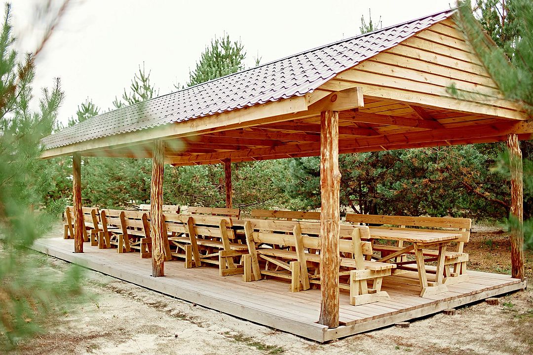 - крытые беседки с мангальной зоной: вечером у озера может быть прохладно — рекомендуем укрыться в удобной застекленной беседке.