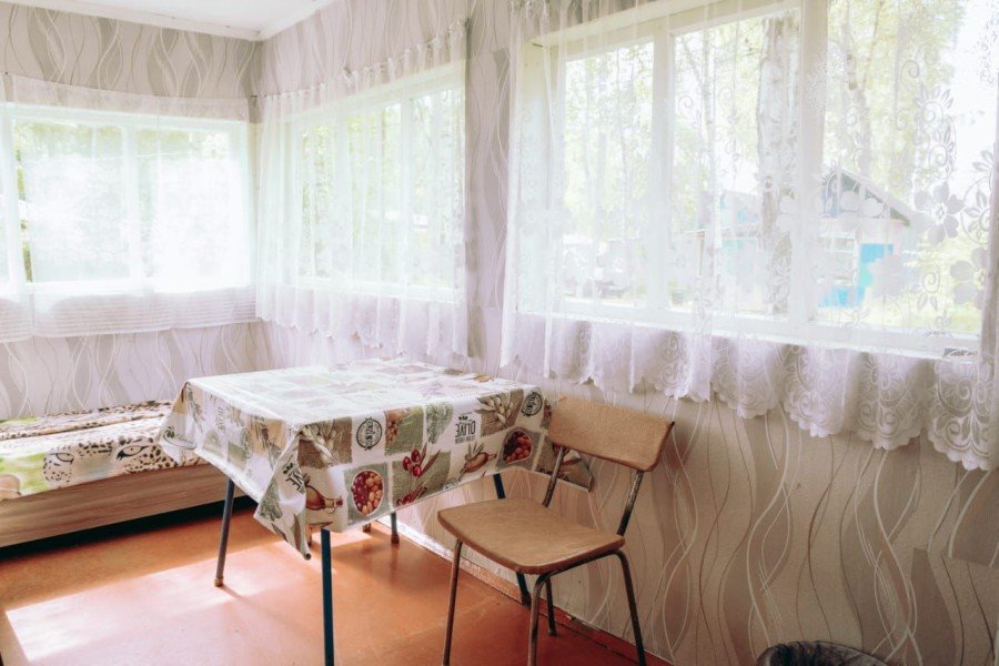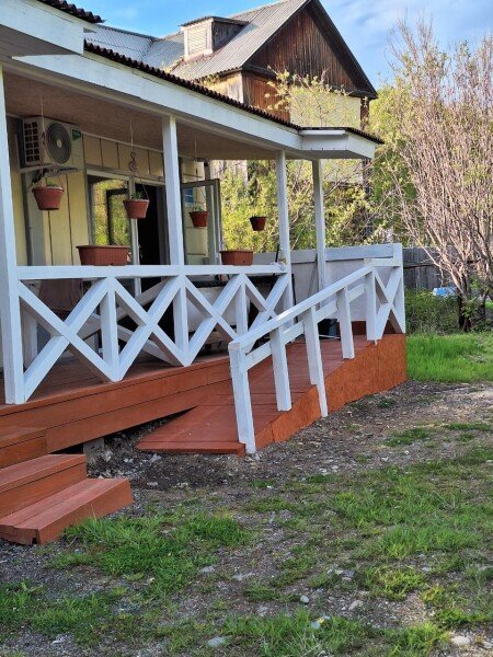 Деревянный дом с террасой. Кристально чистый воздух, возможность заказать питание. Домик в уютной берёзовой роще, парковка рядом.