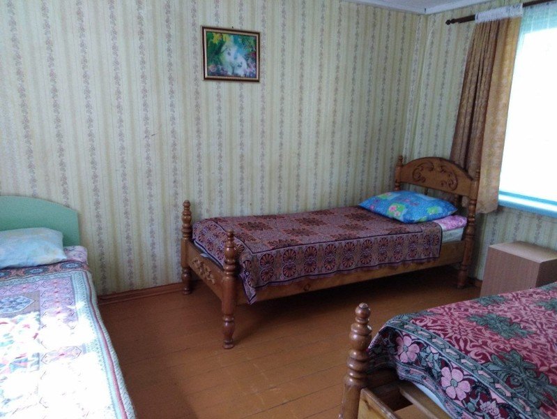 Двуспальная кровать, 2 односпальные кровати, веранда, стоянка рядом, детская площадка, посуда, мангал.