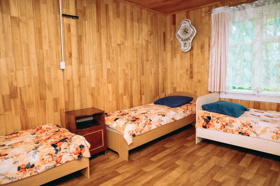 Односпальная кровать: 15, 1,5 спальная кровать: 5. Барбекю. Можно с животными. Постельное белье. Стоянка возле корпуса, большая терраса.