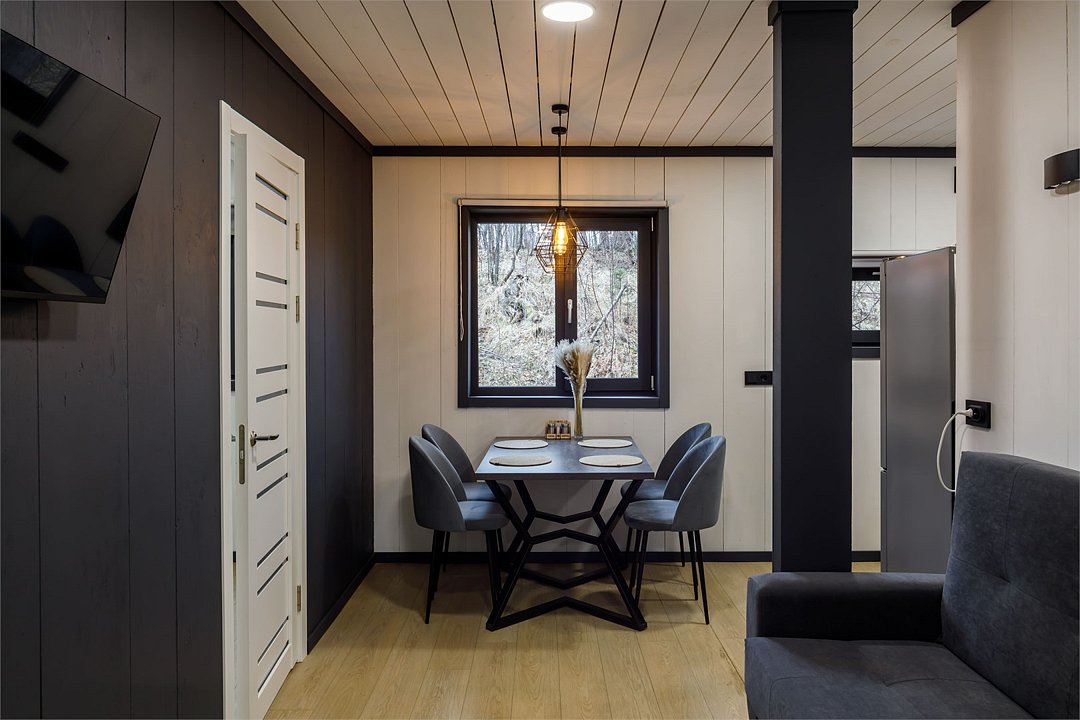 Уютный двухкомнатный модульный дом с красивым видом из окна на озеро Байкал с панорамными окнами, теплыми полами и индивидуальной террасой с мебелью, выполнен из экологически чистых материалов по современным технологиям. В номере есть все необходимое для комфортного проживания. Максимальное количество гостей - 3 человека (двуспальная кровать или 2 односпальные кровати + 1 диван).Услуги и удобства