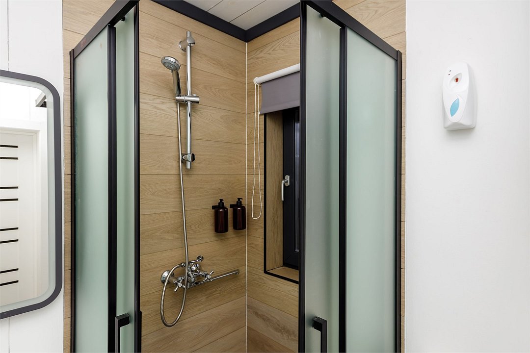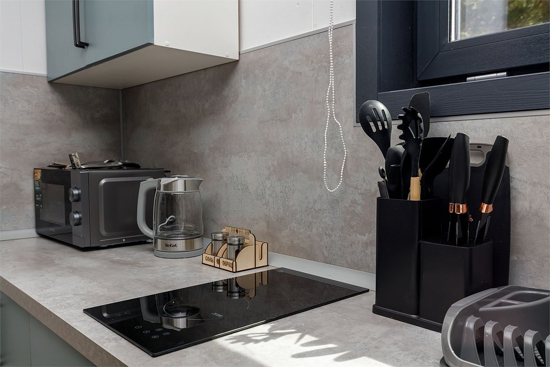 Wi-Fi, холодильник, фен, плита для приготовления пищи, микроволновая печь, утюг, душевая кабина, санузел, водонагреватель, халаты, банные полотенца, тапочки, гигиенические средства, терраса, две односпальные или большая двуспальная кровать, гладильная доска, стулья, шкаф для одежды, вешалки, обеденный стол, зеркало, набор посуды, чайник, унитаз, раковина, обеденная зона, кухонная посуда, стаканы, кухонная утварь, столовые приборы, туалетные средства, диван-кровать, раскладной диван, кухонный уголок, вид на озеро, телевизор со Smart TV, вид на лес, набор для приготовления чая и кофе, мыло, затемняющая штора, окна от пола до потолка, можно с питомцамиВ доме