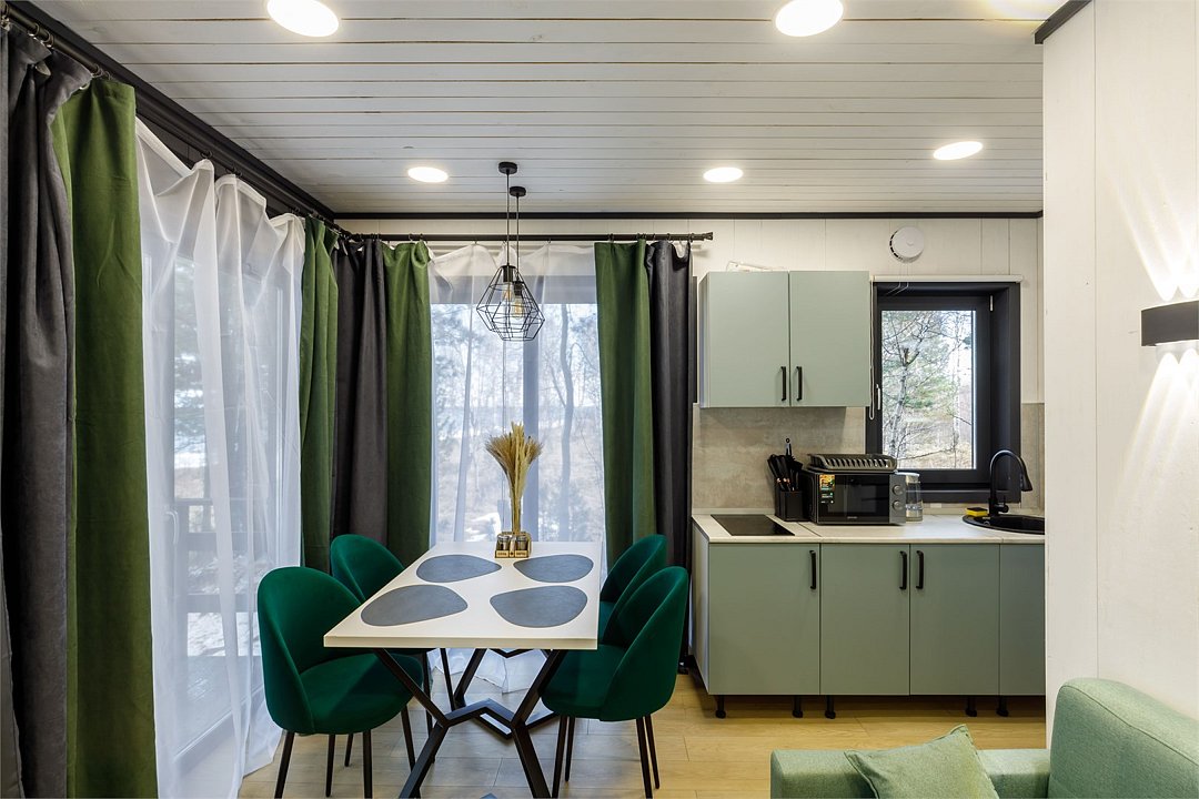 Уютный трехмодульный модульный дом с красивым видом из окна на озеро Байкал с панорамными окнами, теплыми полами и индивидуальной террасой с мебелью, выполнен из экологически чистых материалов по современным технологиям. В номере есть все необходимое для комфортного проживания. Комфортное размещение от 4 человек. Максимальное количество гостей - 6 человек (2 двуспальные кровати или 4 односпальные кровати, 2 двуспальных дивана).Услуги и удобства