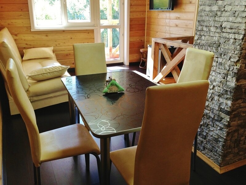 Семейный отдыхДостоинстваОчень красивое, тихое место. Озеро через дорогу. На базе чисто, уютно, тихо. Есть мангальнве зоны, беседки. Есть кострое место, где можно петь песни под гитару у костра. Детская площадка. Самое главное есть столовая, где вкусно кормят, три раза в день! Номера хорошие, уютные, с обогревателем на случай холодной дождливой погоды. Рядом есть магазин.
