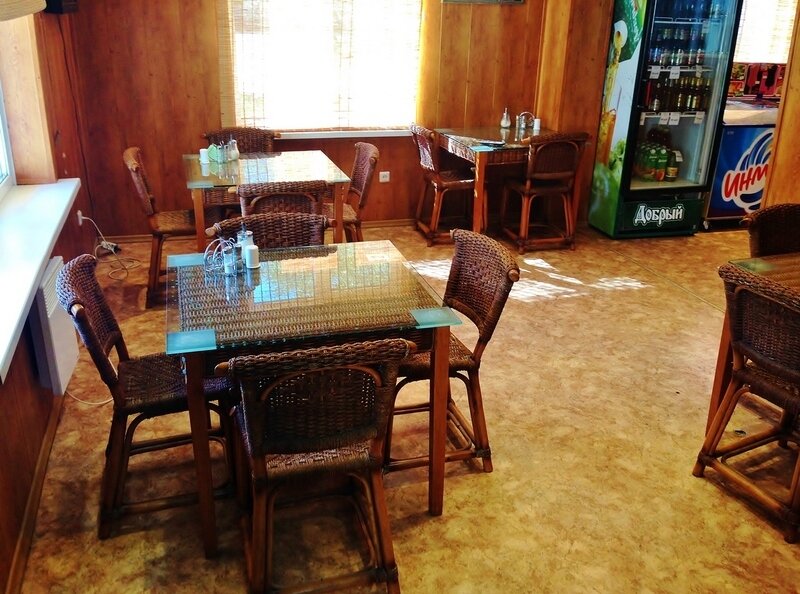Здание столовой состоит из просторного летнего кафе с видом на Байкал вместимостью 48 человек, уютного бара на 20 человек и обеденного зала на 48 человек. Бар, летнее кафе работает в высокий сезон (с 20.06 до 21.08 ориентировочно) с 10:00 до 23:00.