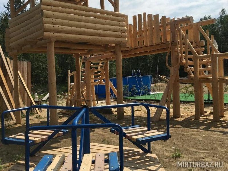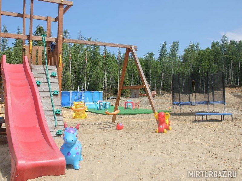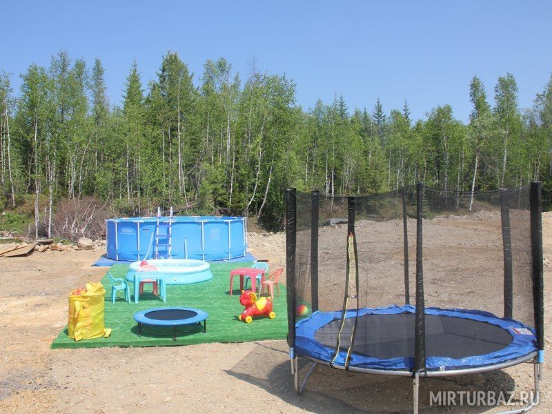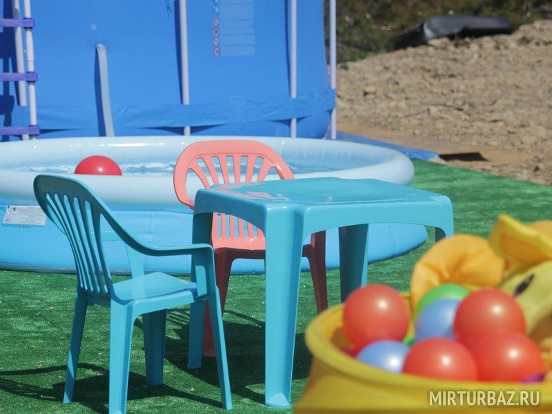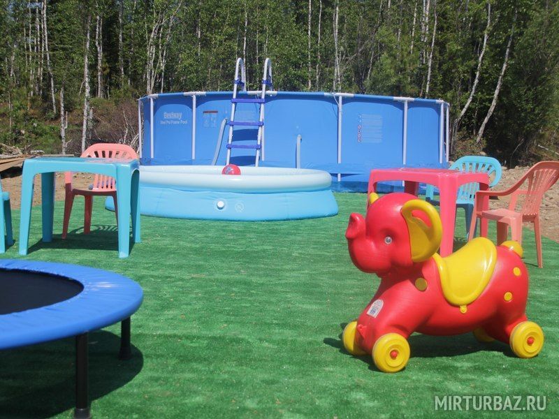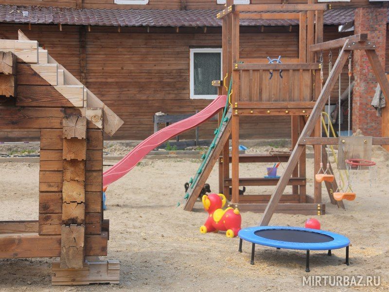 Для развлечения Ваших детей на базе имеется обновленная детская площадка для маленьких гостей, с батутом и бассейном.