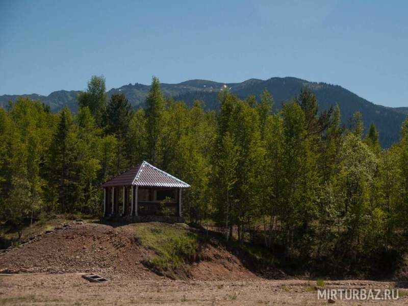 Для комфортного отдыха Вам предлагается уютная крытая беседка, расположенная на возвышенности, с прекрасным видом на озеро в виде сердца. Беседка идеально подходят для отдыха на свежем воздухе в дружеской компании.