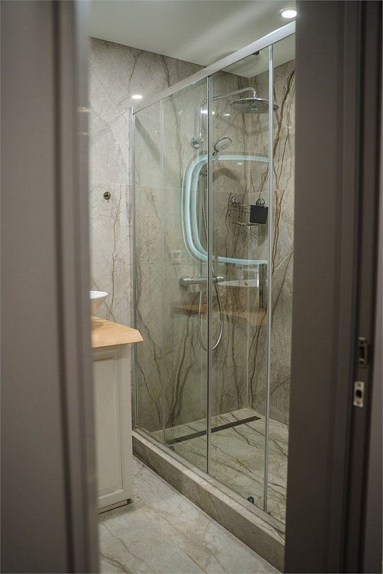 Wi-Fi, фен, ванная комната, душевая кабина, санузел, водонагреватель, теплый пол, халаты, банные полотенца, тапочки, косметические средства, двуспальная кровать, две односпальные кровати, унитаз, раковина, отдельный вход в номер, душ, вид во двор, туалет, панорамные окна, туалетные принадлежности премиум-класса, шапочка для душа, мыло, дождевой и ручной душ, без питомцевВ номере