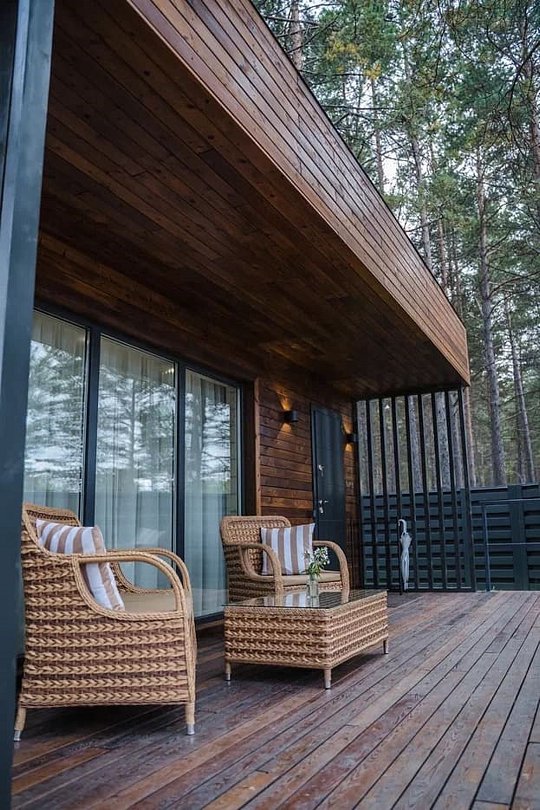 Домик повышенной комфортности, с авторским дизайном. - собственная терраса с панорамными окнами и видом на байкальскую природу; - двуспальная комфортабельная кровать; - прикроватные лампы; прикроватные тумбы; - шторы Blackout; - шкаф для личного гардероба; - чайный столик с кофемашиной и чашками; - стулья; - ковровое покрытие; - душ; - раковина; - санузел; - зеркало; - наборы для личной гигиены; - дополнительное спальное место - еврораскладушка; - услуги горничной.Услуги и удобства