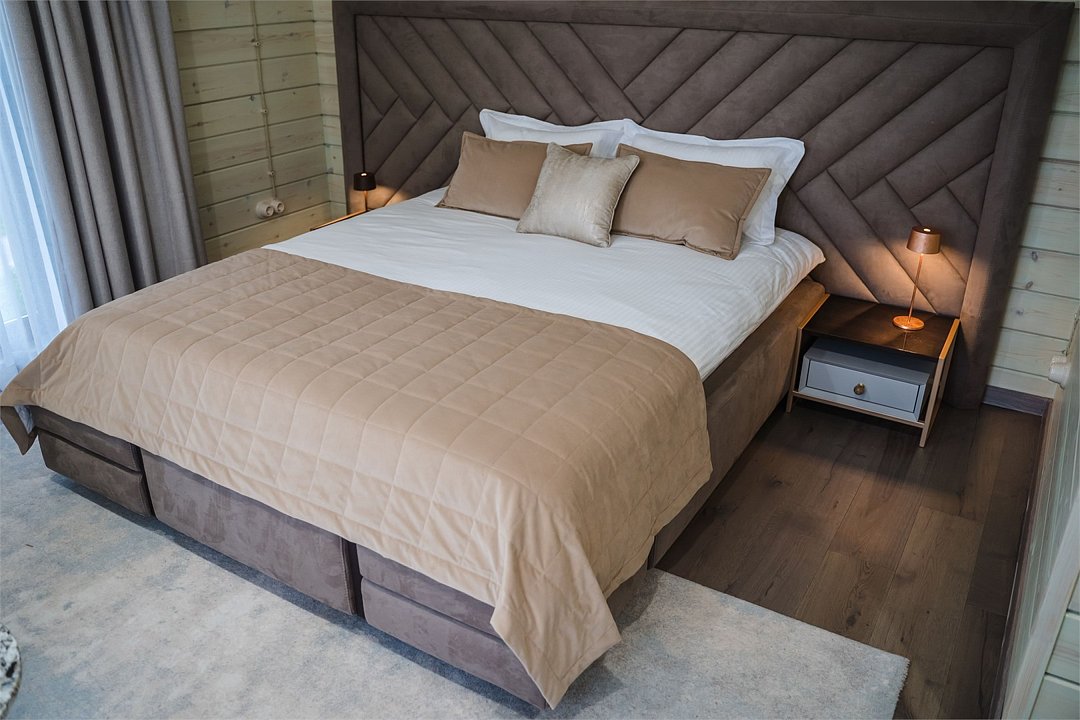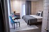 Домики повышенной комфортности, с авторским дизайном. - собственная терраса с панорамными окнами и видом на байкальскую природу; - двуспальная комфортабельная кровать; - прикроватные лампы; - прикроватные тумбы; - шторы Blackout; - шкаф для личного гардероба; - чайный столик с кофемашиной и чашками; - стулья; - ковровое покрытие; - душ; - раковина; - санузел; - зеркало; - наборы для личной гигиены; - дополнительное спальное место - еврораскладушка; - услуги горничной.Услуги и удобства