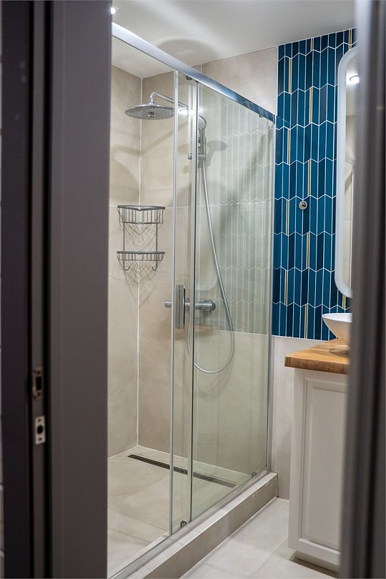 светильник, настольные лампы, фен, обогреватель, ванная комната, душевая кабина, санузел, водонагреватель, теплый пол, халаты, банные полотенца, тапочки, двуспальная кровать, унитаз, душ, туалет, туалетные принадлежности премиум-класса, шапочка для душа, мыло, без питомцевВ номере