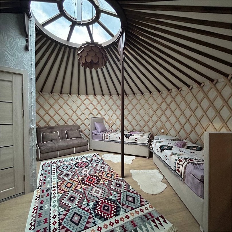 ванная комната, водонагреватель, две односпальные кровати, стулья, шкаф для одежды, унитаз, мягкая мебель, отдельный вход в номер, душ, вид во двор, ламинат, стол, мангал, раскладной диван, номер для некурящих, двуспальный раскладной диван-кровать, без питомцевВ юрте