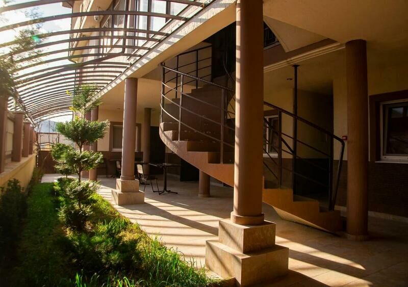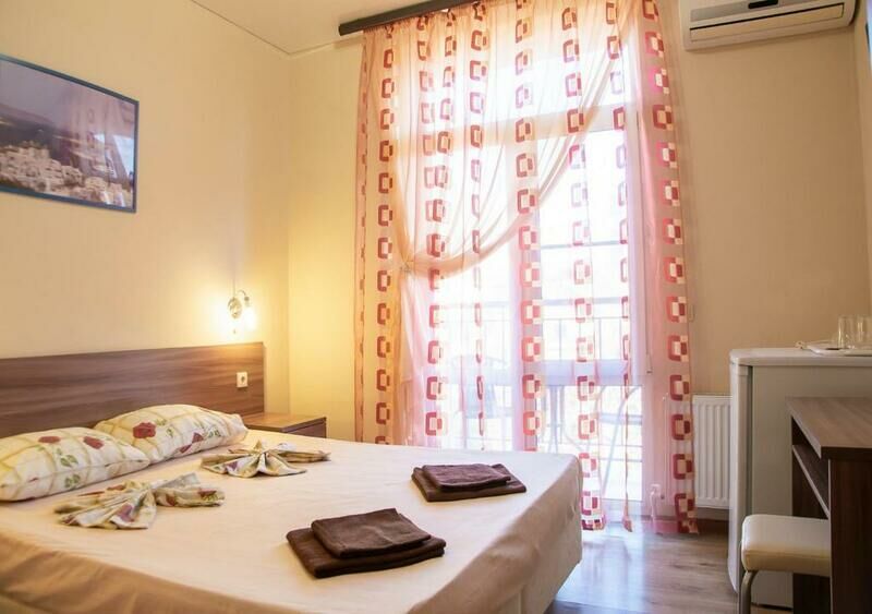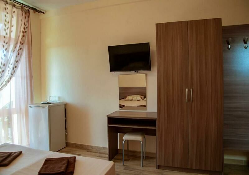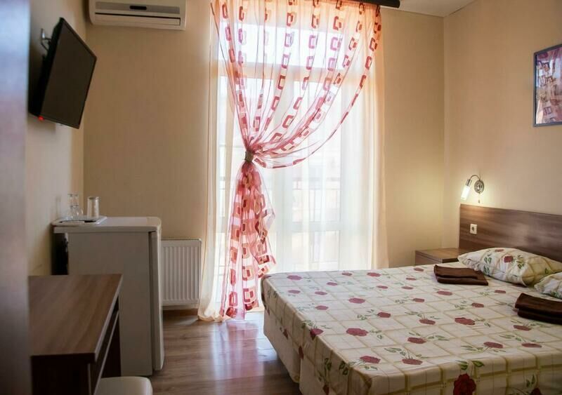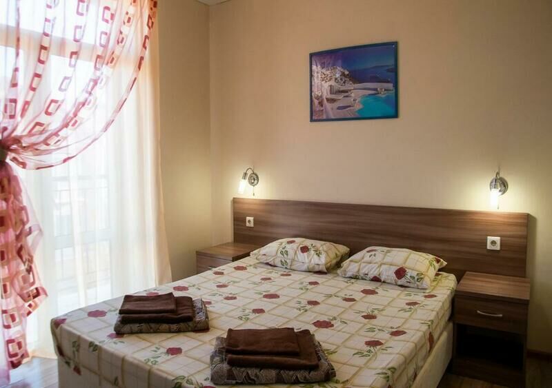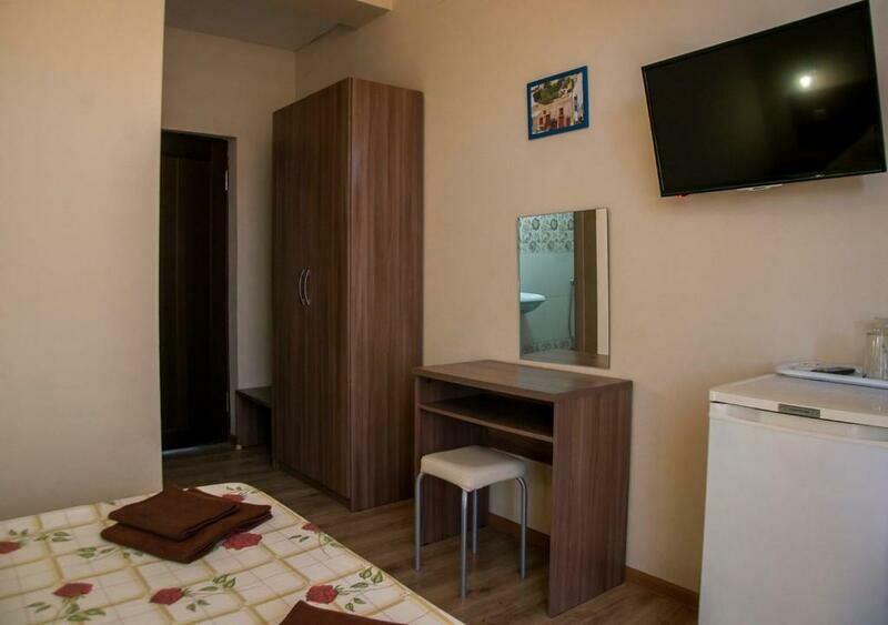Четырехэтажный корпус с мансардным этажом занимает небольшую закрытую территорию. В распоряжении отдыхающих 29 комфортабельных номеров со всеми удобствами. В каждом номере есть кондиционер, телевизор, холодильник, а также санузел и душ. В ряде комнат предусмотрены балконы, откуда отрываются виды на Кавказские горы или море.