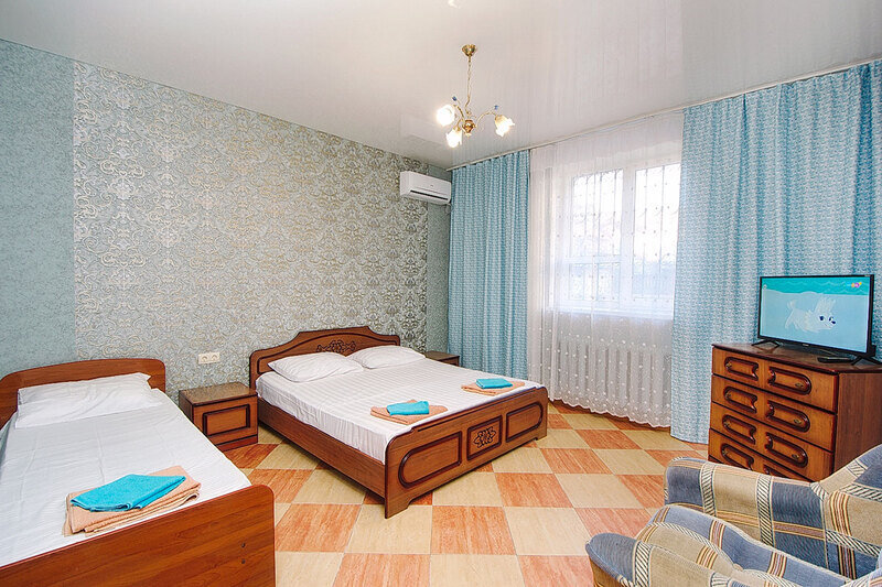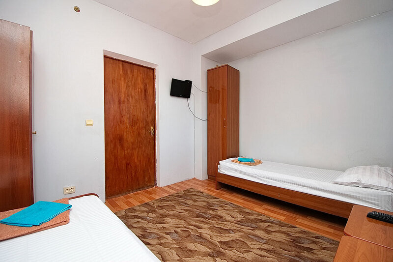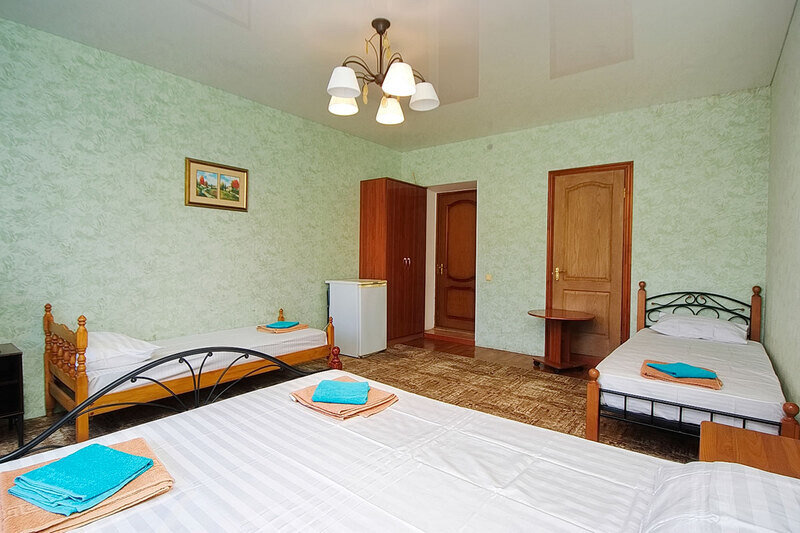 двуспальная кровать, две односпальные кровати, телевизор, сплит система, холодильник, душ и санузел в номере, фен.