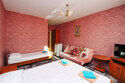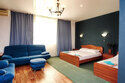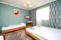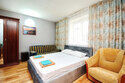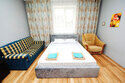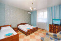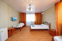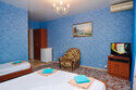 двуспальная кровать, односпальная кровать, двуспальный диван, телевизор, сплит система, холодильник, тумбочки, душ и санузел в номере, фен.