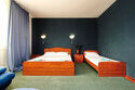 двуспальная кровать, односпальная кровать, телевизор, сплит система, холодильник, тумбочки, душ и санузел в номере, фен.