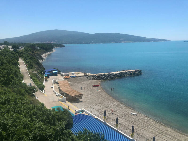 Галечный поселковый пляж находится в 600 метрах от гостиницы. Пляж благоустроен – есть лежаки, навесы, кабинки для переодевания