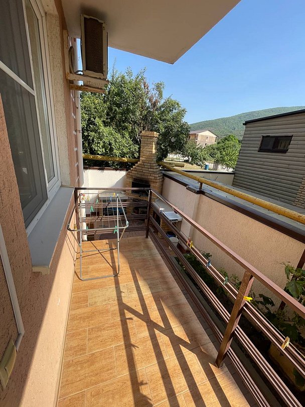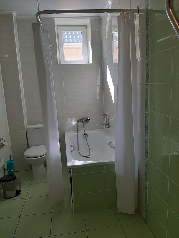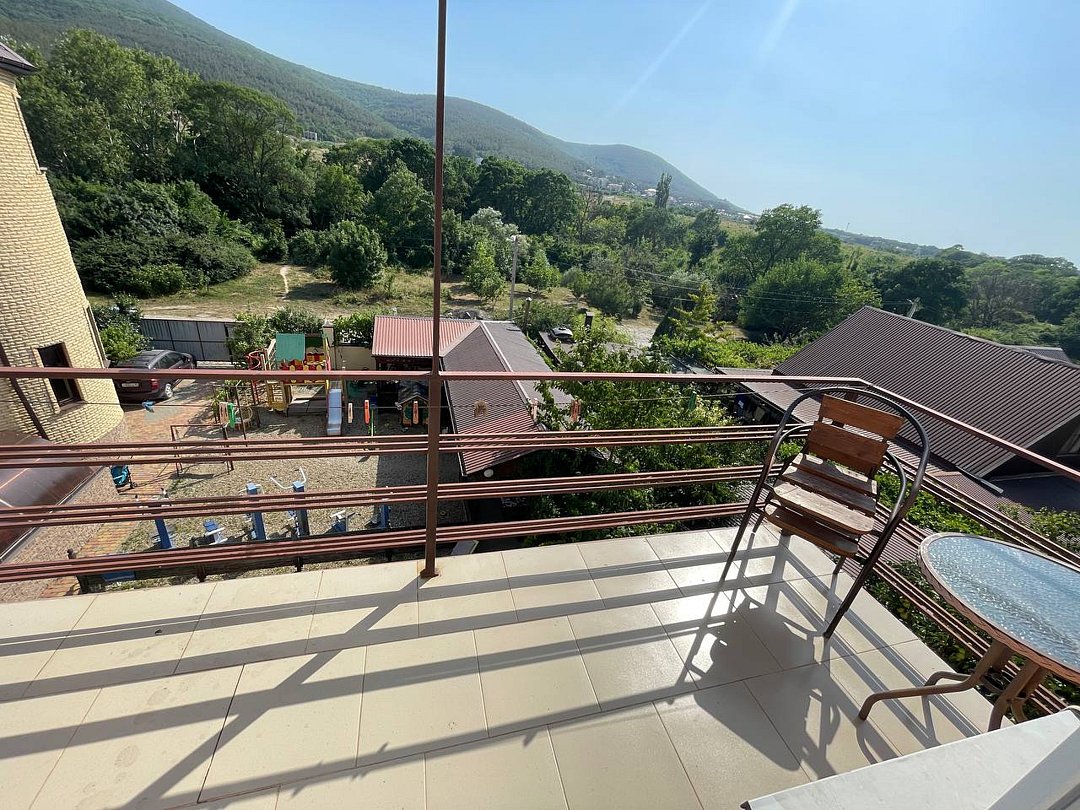 двуспальная кровать + диван, санузел в ванной, 2 ТВ, мини-холодильник,2 сплит-системы, чайник, чайные принадлежности, балкон, мебель на балконе.4х мест. 2-х комнатный с террасой